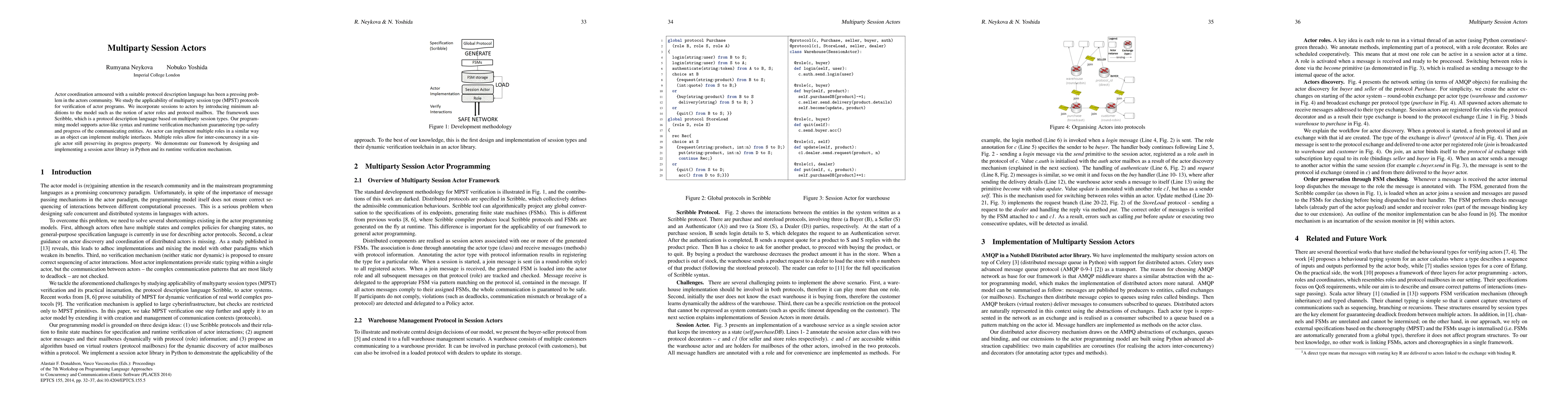 This paper explores the use of multiparty session type protocols for verifying actor programs, introducing minimal additions like actor roles and protocol mailboxes. It employs Scribble for protocol description and demonstrates a runtime verification mechanism ensuring type-safety and progress, implemented in a Python session actor library.