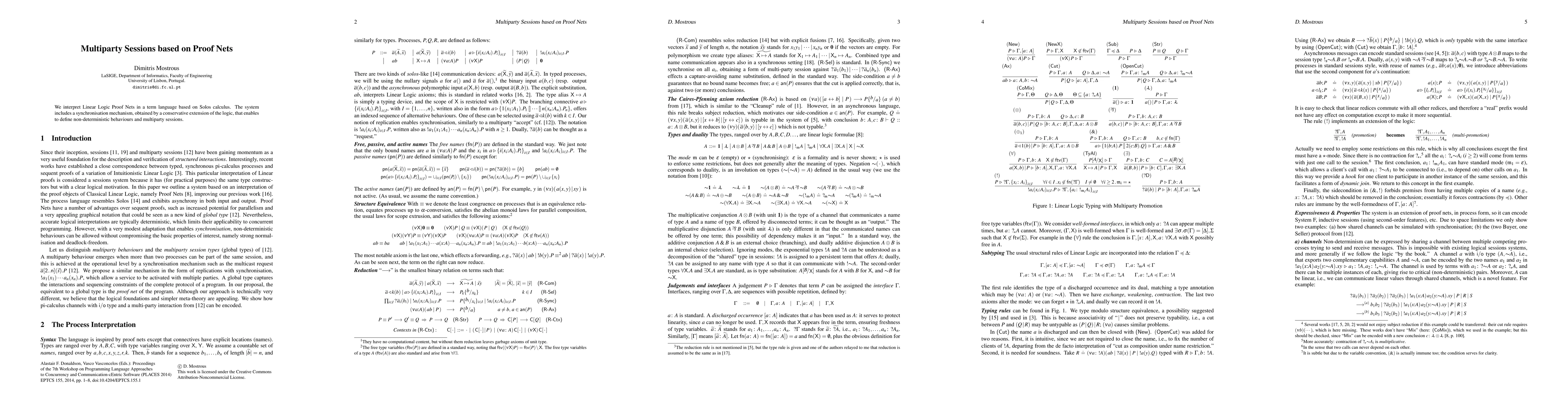 We interpret Linear Logic Proof Nets in a term language based on Solos calculus. The system includes a synchronisation mechanism, obtained by a conservative extension of the logic, that enables to define non-deterministic behaviours and multiparty sessions.