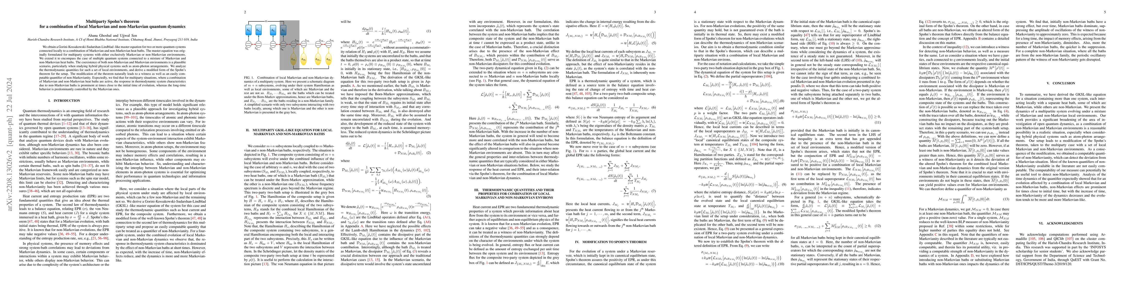 This paper derives a modified Spohn's theorem for quantum systems interacting with mixed Markovian and non-Markovian heat baths, providing a quantifiable measure of non-Markovianity. It highlights that, in multiparty systems, non-Markovian effects are most significant shortly after the initial state, while long-term dynamics are mainly governed by Markovian processes.