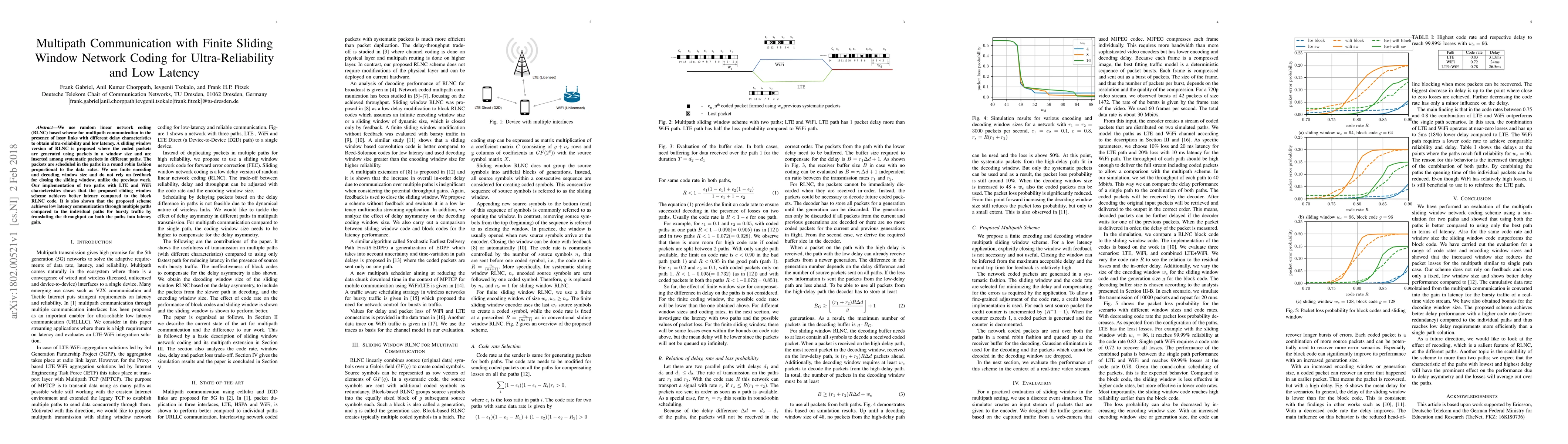 This paper proposes a finite sliding window network coding scheme for multipath communication using random linear network coding (RLNC) to enhance reliability and reduce latency in lossy links. The sliding window RLNC method achieves better latency compared to block RLNC and translates throughput from multiple paths into lower latency for bursty traffic.