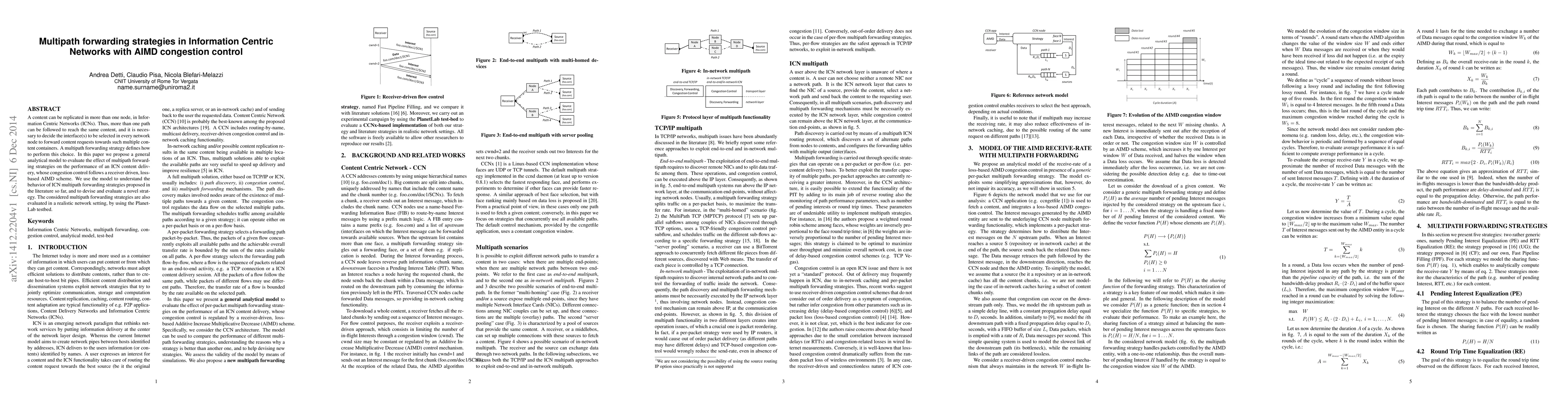 This paper proposes an analytical model to evaluate multipath forwarding strategies in Information Centric Networks (ICNs) that utilize an AIMD congestion control scheme. It analyzes existing strategies and introduces a novel approach, validated through experiments on the PlanetLab testbed.
