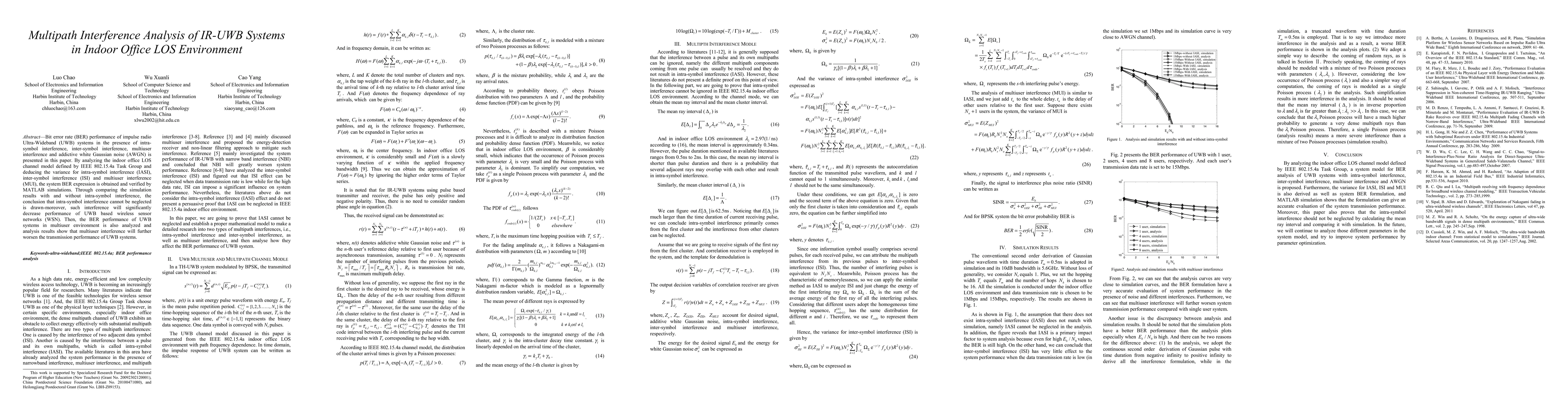 This paper analyzes the bit error rate (BER) performance of IR-UWB systems in indoor office environments, highlighting the significant impact of intra-symbol interference (ISI) and multiuser interference (MUI) on the system's performance, which is further verified through MATLAB simulations.