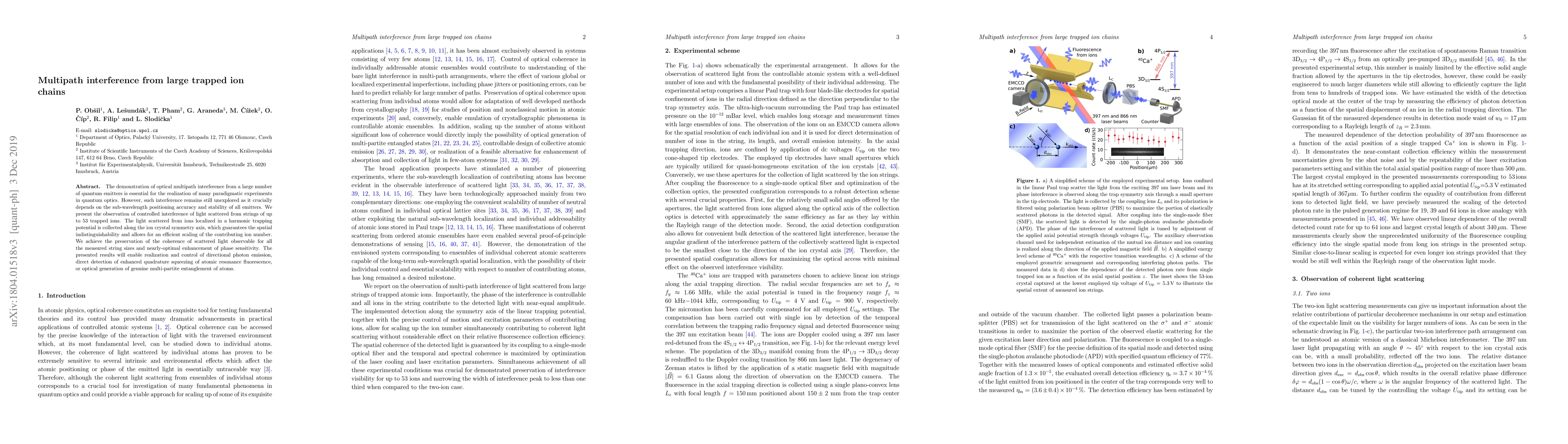 This paper reports the observation of optical multipath interference from up to 53 trapped ions, demonstrating the coherence and scalability of light scattering from quantum emitters. The findings enable potential applications in directional photon emission, enhanced quadrature squeezing, and multi-partite entanglement generation.