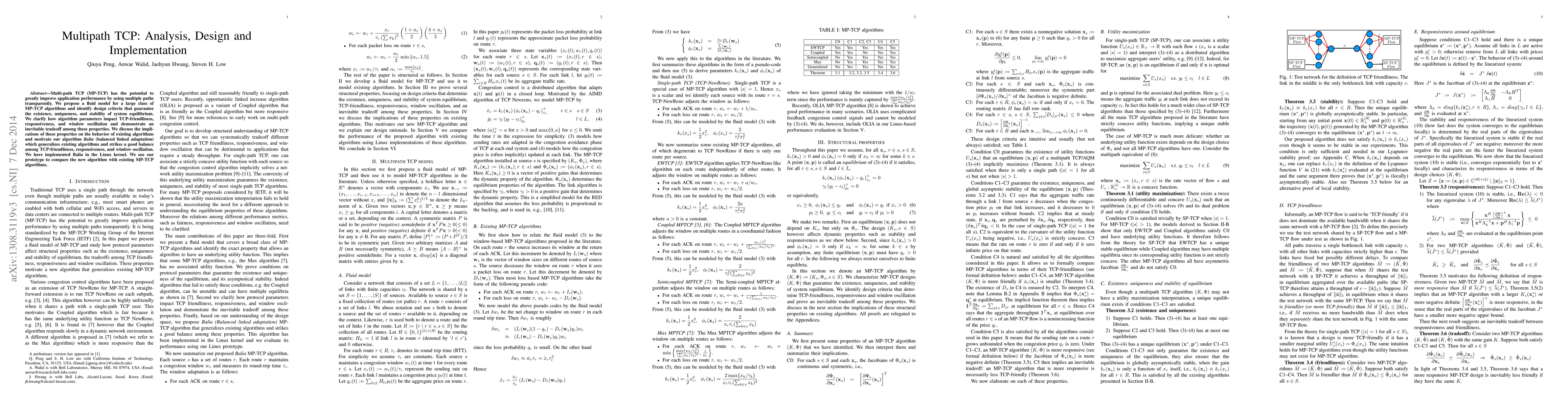 This paper proposes a fluid model for Multipath TCP (MP-TCP) algorithms, identifying design criteria for equilibrium existence, uniqueness, and stability. It analyzes the trade-offs between TCP-friendliness, responsiveness, and window oscillation, and presents a new algorithm that balances these properties, implemented in the Linux kernel for comparison with existing algorithms.