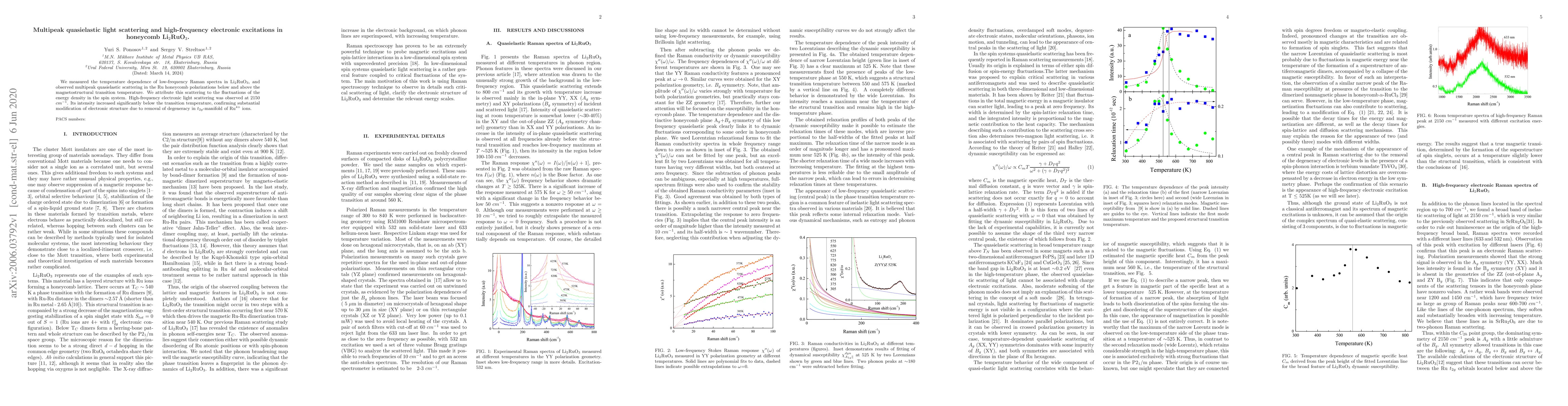 Researchers observed multipeak quasielastic scattering in Li2RuO3 below and above its magnetostructural transition temperature, attributed to energy density fluctuations in the spin system. High-frequency electronic light scattering increased significantly below the transition temperature, indicating a substantial modification of electronic structure.