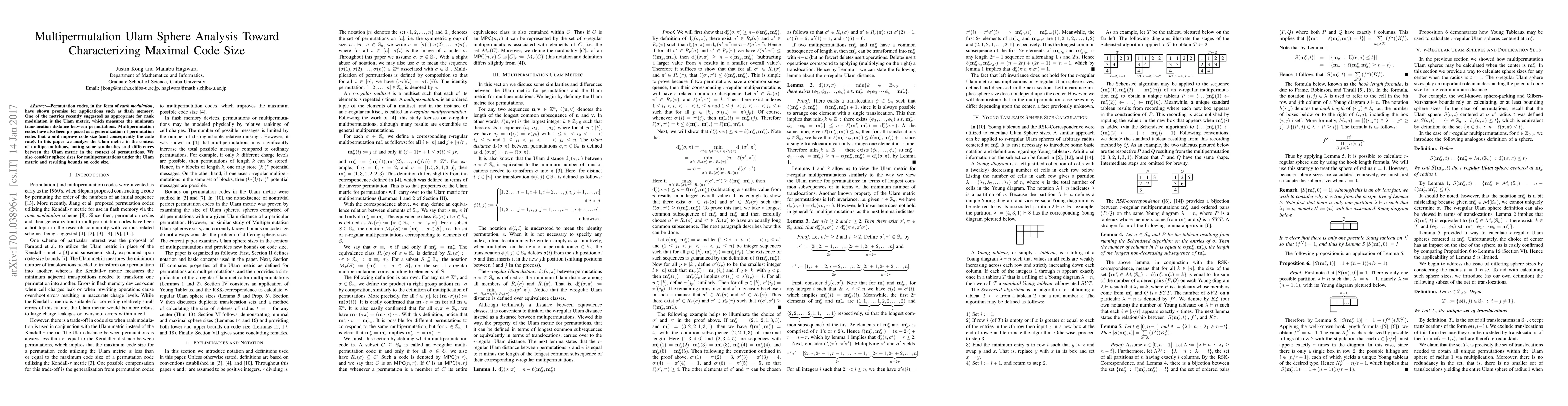 This paper analyzes the Ulam metric for multipermutation codes, comparing it to permutations and exploring its implications for code size and rate in applications like flash memory. The study also investigates the Ulam sphere sizes for multipermutations and their impact on maximal code size.