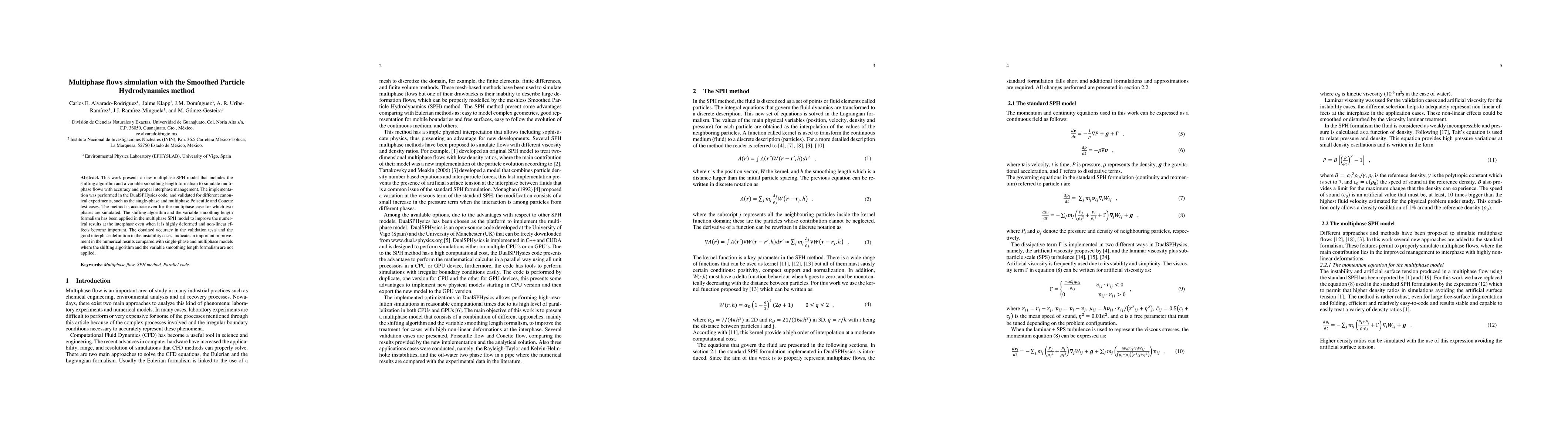 This paper introduces a new multiphase SPH model with a shifting algorithm and variable smoothing length to accurately simulate multiphase flows, validated through various test cases. The proposed method significantly improves interphase management and accuracy, especially for highly deformed interfaces.
