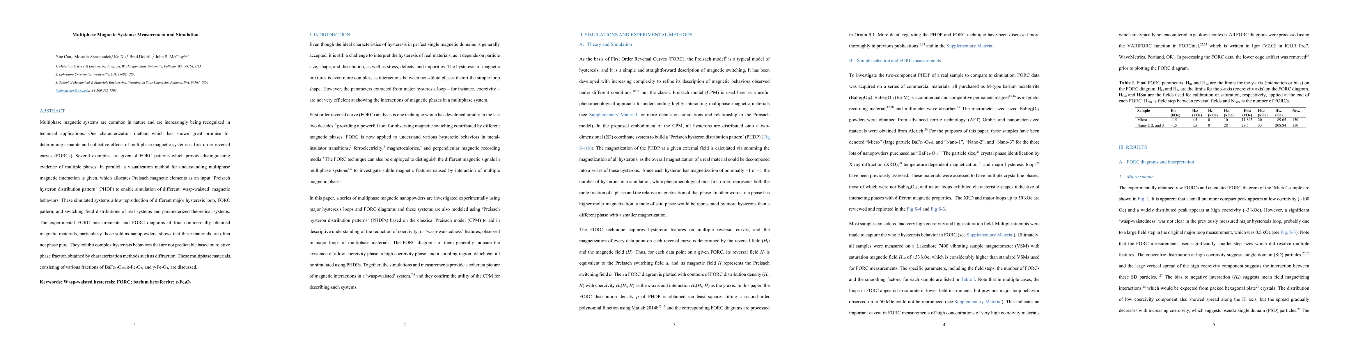 Multiphase magnetic systems are common in nature and are increasingly being recognized in technical applications. One characterization method which has shown great promise for determining separate and collective effects of multiphase magnetic systems is first order reversal curves (FORCs). Several examples are given of FORC patterns which provide distinguishing evidence of multiple phases. In parallel, a visualization method for understanding multiphase magnetic interaction is given, which allocates Preisach magnetic elements as an input 'Preisach hysteron distribution pattern' (PHDP) to enable simulation of different 'wasp-waisted' magnetic behaviors. These simulated systems allow reproduction of different major hysteresis loop, FORC pattern, and switching field distributions of real systems and parameterized theoretical systems. The experimental FORC measurements and FORC diagrams of four commercially obtained magnetic materials, particularly those sold as nanopowders, shows that these materials are often not phase pure. They exhibit complex hysteresis behaviors that are not predictable based on relative phase fraction obtained by characterization methods such as diffraction. These multiphase materials, consisting of various fractions of BaFe12O19, epsilon-Fe2O3, and gamma-Fe2O3, are discussed.
