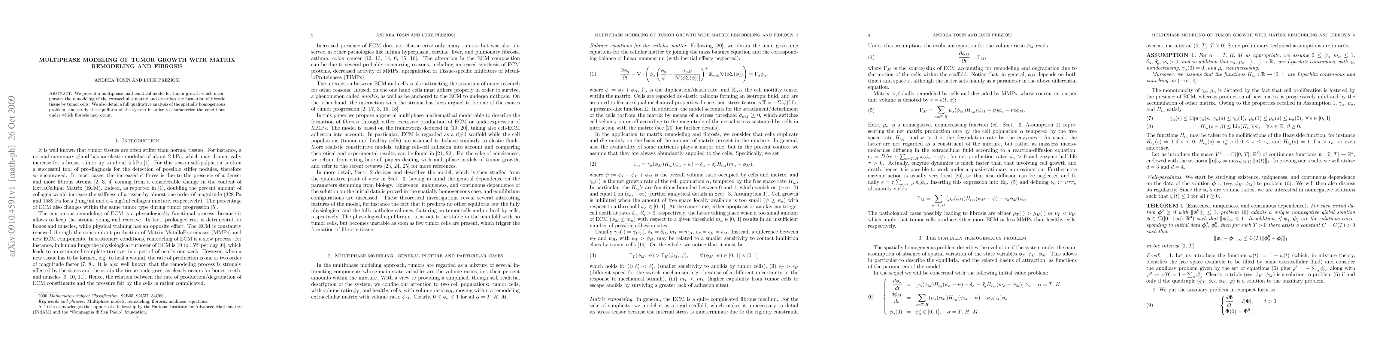This paper develops a multiphase mathematical model to simulate tumor growth, including extracellular matrix remodeling and fibrotic tissue formation by tumor cells. The study conducts a qualitative analysis to identify conditions leading to fibrosis.