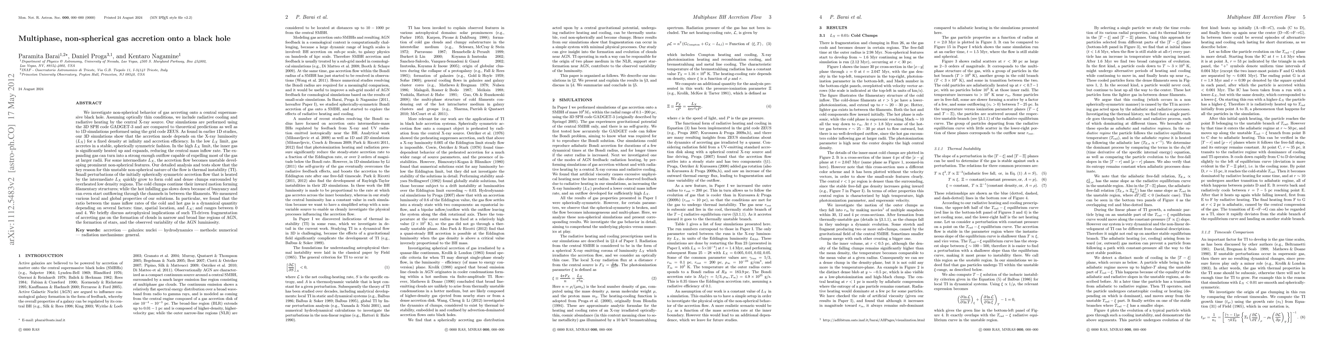 This paper investigates the non-spherical behavior of gas accretion onto supermassive black holes using 3D simulations, revealing that accretion modes depend on X-ray luminosity. At high X-ray luminosities, gas heating and expansion can lead to outflows, while intermediate luminosities cause thermal instability, resulting in filamentary structures and variable mass inflow rates.