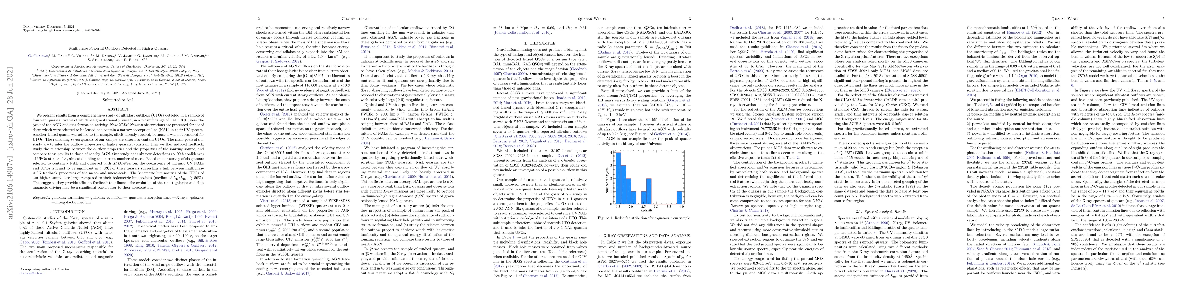 We present results from a comprehensive study of ultrafast outflows (UFOs) detected in a sample of fourteen quasars, twelve of which are gravitationally lensed, in a redshift range of 1.41-3.91, near the peak of the AGN and star formation activity. New XMM-Newton observations are presented for six of them which were selected to be lensed and contain a narrow absorption line (NAL) in their UV spectra. Another lensed quasar was added to the sample, albeit already studied, because it was not searched for UFOs. The remaining seven quasars of our sample are known to contain UFOs. The main goals of our study are to infer the outflow properties of high-z quasars, constrain their outflow induced feedback, study the relationship between the outflow properties and the properties of the ionizing source, and compare these results to those of nearby AGN. Our study adds six new detections ( > 99% confidence) of UFOs at z > 1.4, almost doubling the current number of cases. Based on our survey of six quasars selected to contain a NAL and observed with XMM-Newton, the coexistence of intrinsic UV NALs and UFOs is found to be significant in > 83% of these quasars suggesting a link between multiphase AGN feedback properties of the meso- and micro-scale. The kinematic luminosities of the UFOs of our high-z sample are large compared to their bolometric luminosities (median of L_K/L_Bol ~ 50%). This suggests they provide efficient feedback to influence the evolution of their host galaxies and that magnetic driving may be a significant contributor to their acceleration.