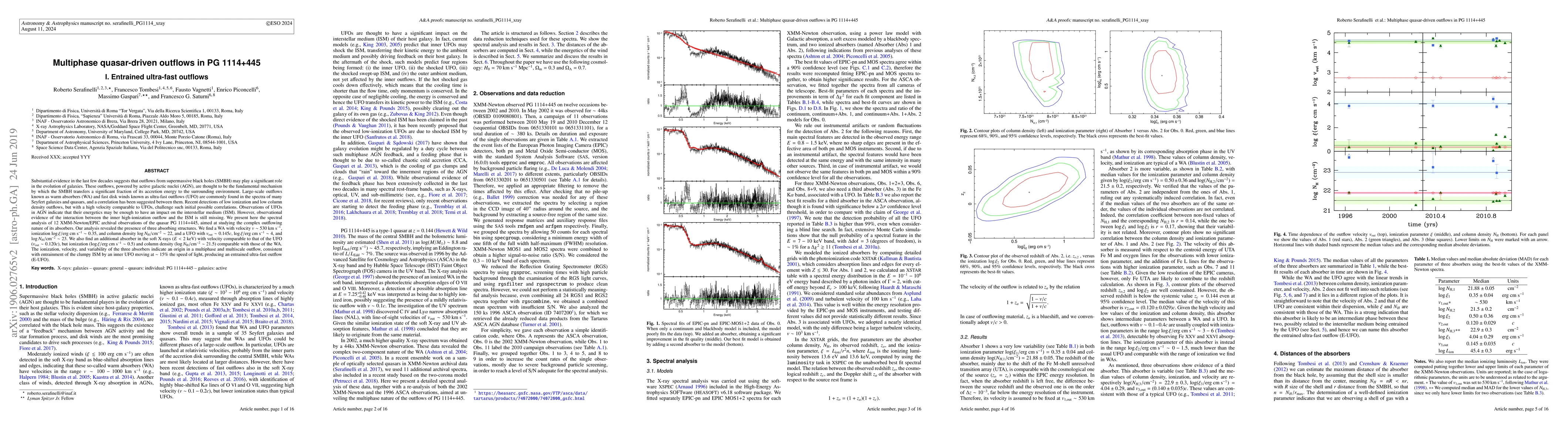This paper analyzes XMM-Newton observations of the quasar PG 1114+445, revealing three absorbing structures: a warm absorber, an ultra-fast outflow, and an additional soft X-ray absorber. The findings suggest a multiphase outflow driven by the quasar, with the ultra-fast outflow entraining the interstellar medium.