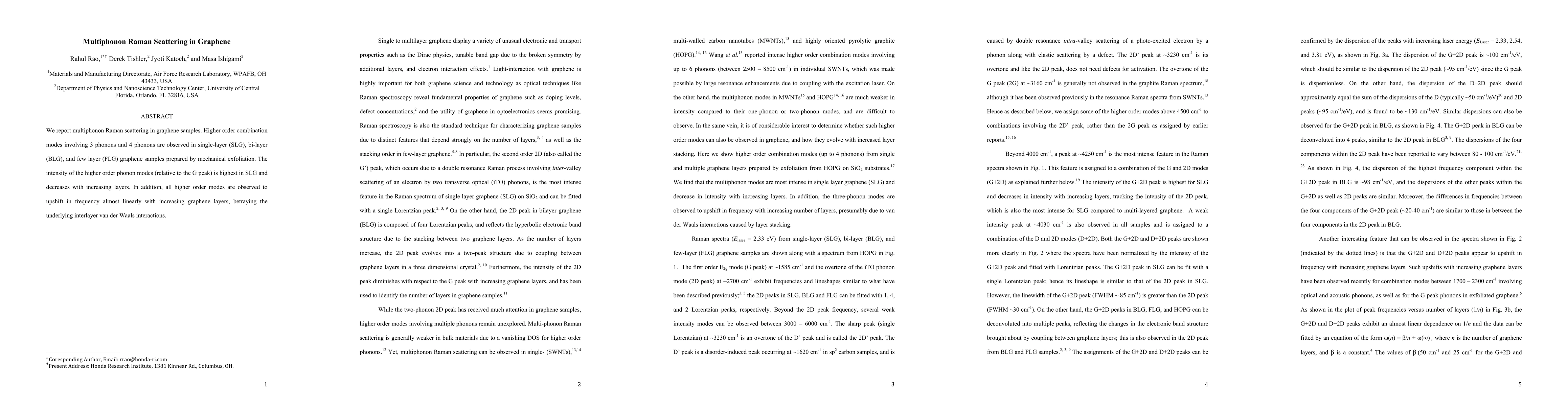 Researchers observed multiphonon Raman scattering in graphene samples of varying layers, revealing higher-order phonon modes that increase with layer thickness and vanish at thicker layers.