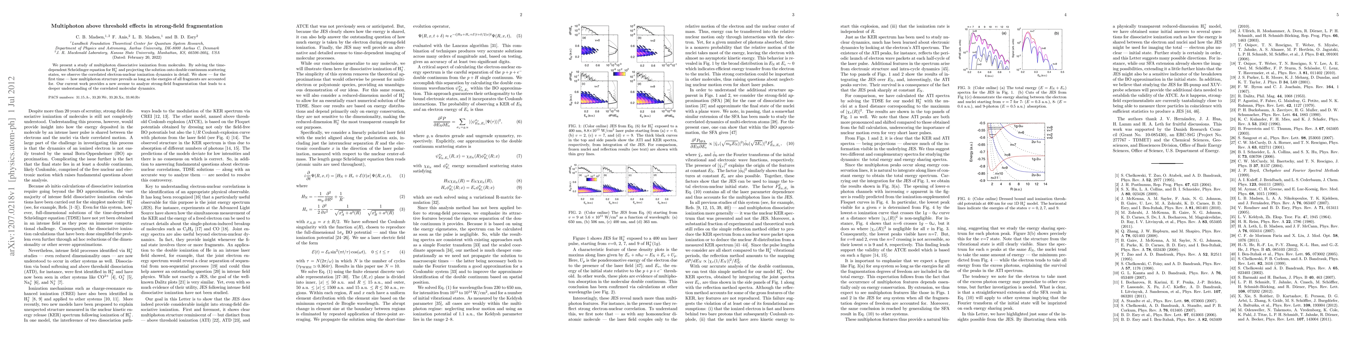 This research investigates multiphoton dissociative ionization in molecules, revealing detailed correlated electron-nuclear dynamics through the solution of the time-dependent Schrödinger equation for H$_2^+$. It demonstrates, for the first time, the persistence of multiphoton structure in strong-field fragmentation when accounting for all fragment energies.