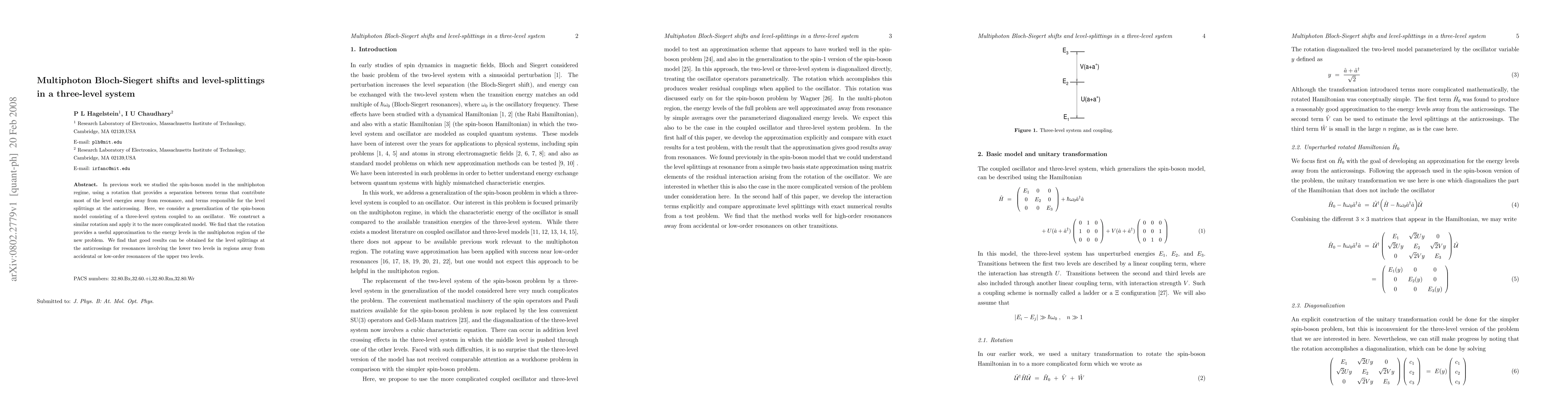 In previous work we studied the spin-boson model in the multiphoton regime, using a rotation that provides a separation between terms that contribute most of the level energies away from resonance, and terms responsible for the level splittings at the anticrossing. Here, we consider a generalization of the spin-boson model consisting of a three-level system coupled to an oscillator. We construct a similar rotation and apply it to the more complicated model. We find that the rotation provides a useful approximation to the energy levels in the multiphoton region of the new problem. We find that good results can be obtained for the level splittings at the anticrossings for resonances involving the lower two levels in regions away from accidental or low-order resonances of the upper two levels.