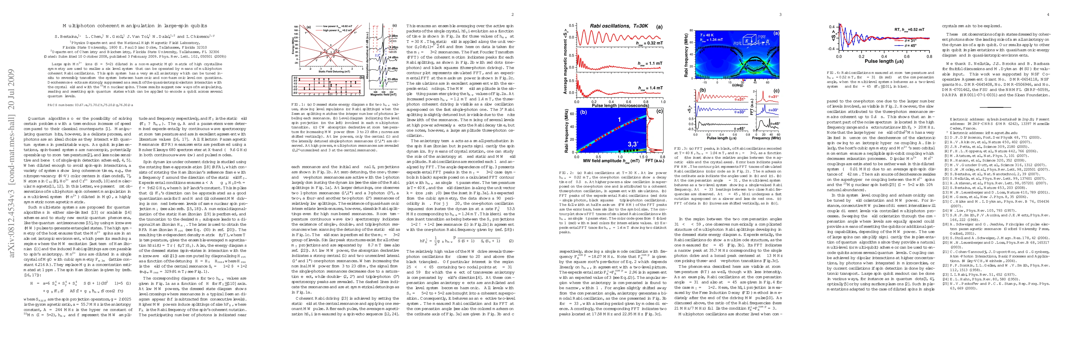 Large spin Mn2+ ions (S=5/2) diluted in a non-magnetic MgO matrix of high crystalline symmetry are used to realize a six level system that can be operated by means of multi-photon coherent Rabi oscillations. This spin system has a very small anisotropy which can be tuned in-situ to reversibly transform the system between harmonic and non-harmonic level configurations. Decoherence effects are strongly suppressed as a result of the quasi-isotropic electron interaction with the crystal field and with the 55Mn nuclear spins. These results suggest new ways of manipulating, reading and resetting spin quantum states which can be applied to encode a qubit across several quantum levels.