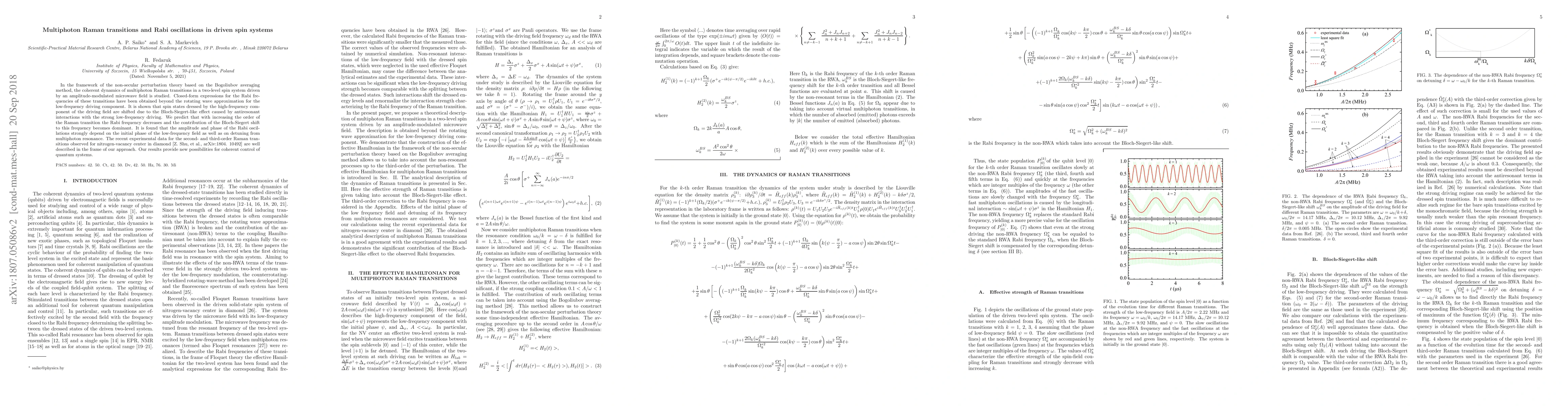 In the framework of the non-secular perturbation theory based on the Bogoliubov averaging method, the coherent dynamics of multiphoton Raman transitions in a two-level spin system driven by an amplitude-modulated microwave field is studied. Closed-form expressions for the Rabi frequencies of these transitions have been obtained beyond the rotating wave approximation for the low-frequency driving component. It is shown that spin states dressed by the high-frequency component of the driving field are shifted due to the Bloch-Siegert-like effect caused by antiresonant interactions with the strong low-frequency driving. We predict that with increasing the order of the Raman transition the Rabi frequency decreases and the contribution of the Bloch-Siegert shift to this frequency becomes dominant. It is found that the amplitude and phase of the Rabi oscillations strongly depend on the initial phase of the low-frequency field as well as on detuning from multiphoton resonance. The recent experimental data for the second- and third-order Raman transitions observed for nitrogen-vacancy center in diamond [Z. Shu, et al., arXiv:1804. 10492] are well described in the frame of our approach. Our results provide new possibilities for coherent control of quantum systems.