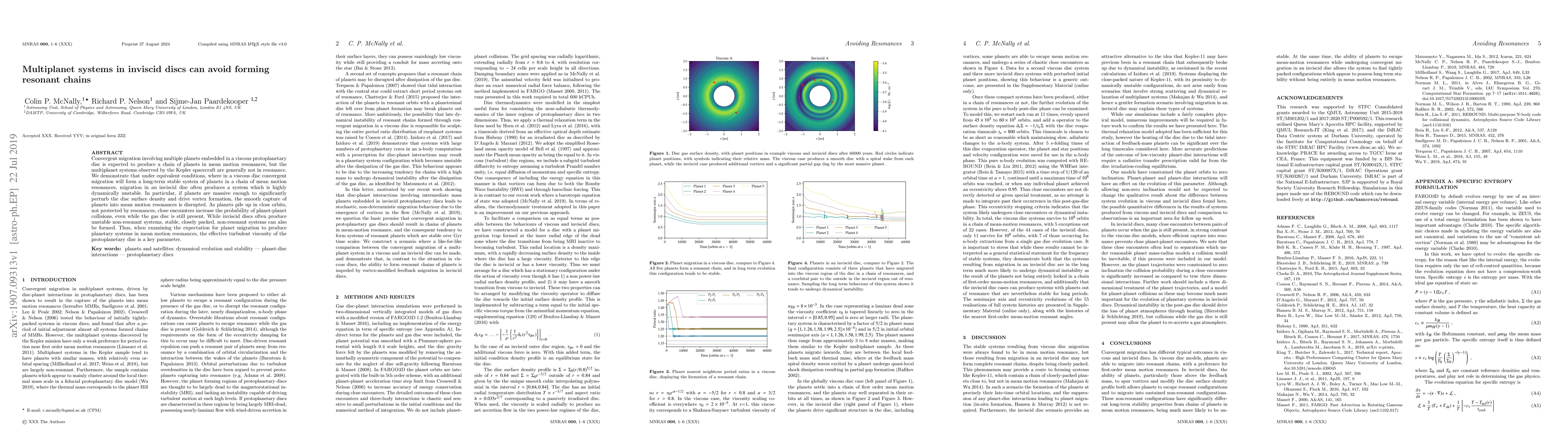 This paper shows that inviscid discs can prevent the formation of resonant chains in multiplanet systems, contrary to the expectation in viscous discs. It finds that while convergent migration in viscous discs leads to resonant chains, inviscid discs often result in unstable, non-resonant systems due to vortex formation and increased collision risks.
