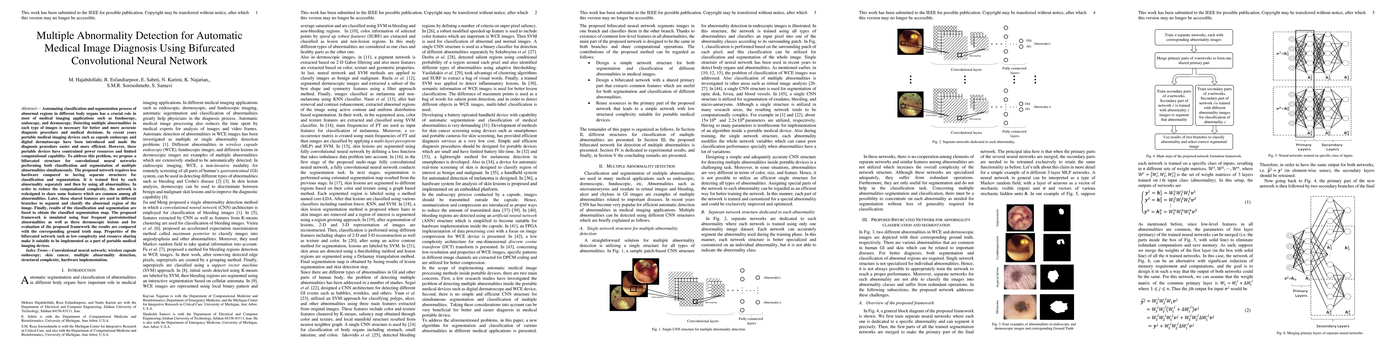 This paper proposes a bifurcated convolutional neural network for detecting multiple abnormalities in medical images, enabling both classification and segmentation. The network shares features to reduce computational complexity, making it suitable for portable medical imaging devices.