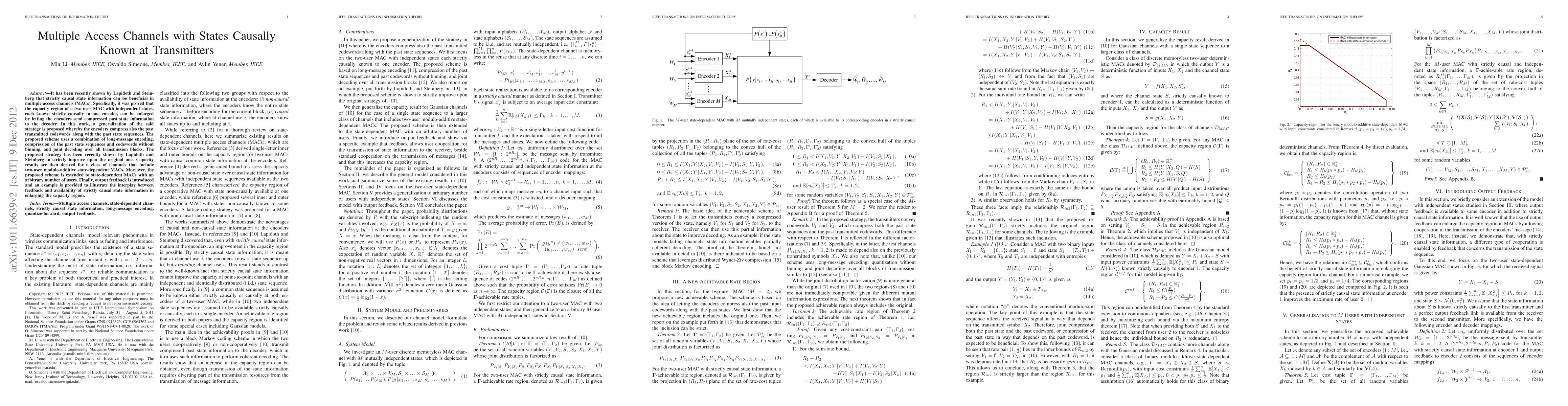 This paper generalizes a strategy to enhance the capacity of multiple access channels, incorporating both past state information and transmitted codewords. The proposed scheme improves upon previous methods and extends the approach to channels with any number of users, demonstrating its effectiveness through theoretical results and an example involving output feedback.