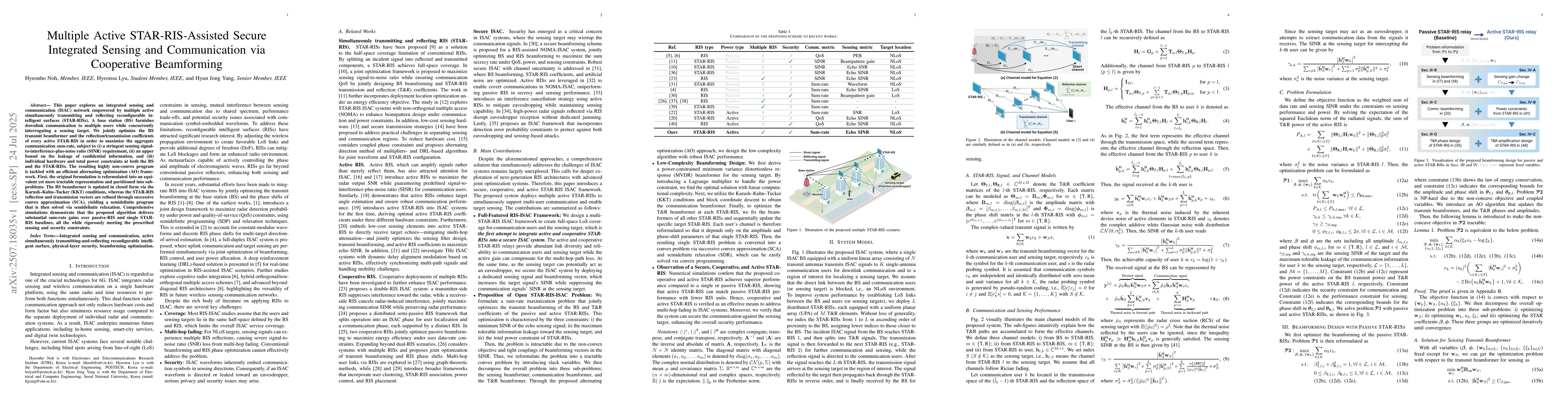 This paper explores an integrated sensing and communication (ISAC) network empowered by multiple active simultaneously transmitting and reflecting reconfigurable intelligent surfaces (STAR-RISs). A base station (BS) furnishes downlink communication to multiple users while concurrently interrogating a sensing target. We jointly optimize the BS transmit beamformer and the reflection/transmission coefficients of every active STAR-RIS in order to maximize the aggregate communication sum-rate, subject to (i) a stringent sensing signal-to-interference-plus-noise ratio (SINR) requirement, (ii) an upper bound on the leakage of confidential information, and (iii) individual hardware and total power constraints at both the BS and the STAR-RISs. The resulting highly non-convex program is tackled with an efficient alternating optimization (AO) framework. First, the original formulation is reformulated into an equivalent yet more tractable representation and partitioned into subproblems. The BS beamformer is updated in closed form via the Karush-Kuhn-Tucker (KKT) conditions, whereas the STAR-RIS reflection and transmission vectors are refined through successive convex approximation (SCA), yielding a semidefinite program that is then solved via semidefinite relaxation. Comprehensive simulations demonstrate that the proposed algorithm delivers substantial sum-rate gains over passive-RIS and single STAR-RIS baselines, all the while rigorously meeting the prescribed sensing and security constraints.