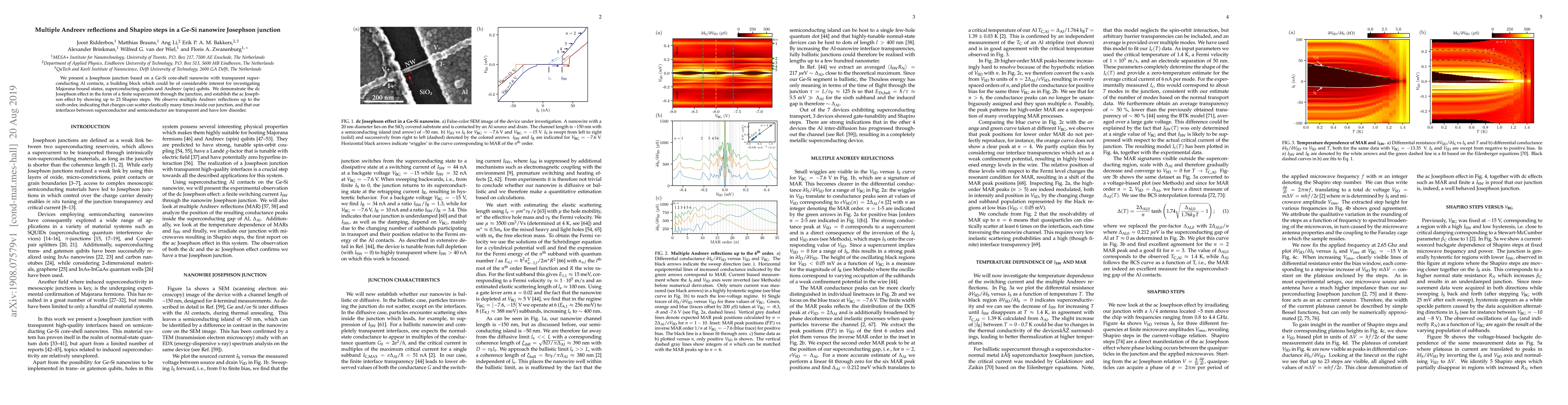 The paper demonstrates a novel Ge-Si nanowire Josephson junction with transparent superconducting contacts, showcasing multiple Andreev reflections and the ac Josephson effect through Shapiro steps.