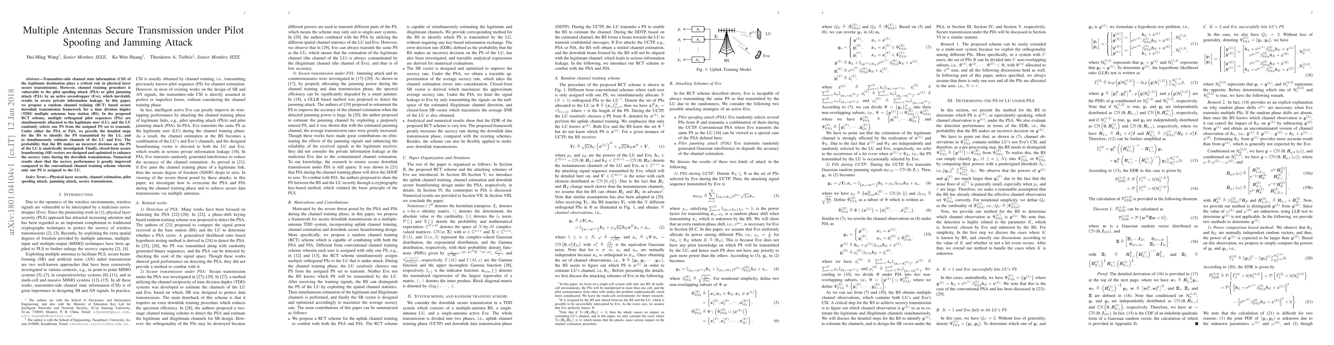 This paper proposes a random channel training (RCT) scheme to secure transmissions in a multiple antennas base station against pilot spoofing and jamming attacks. The RCT scheme uses multiple orthogonal pilot sequences, allowing the legitimate user to randomly select one for transmission, thereby enhancing the ability to identify the transmitted sequence and estimate channels, even under attack.