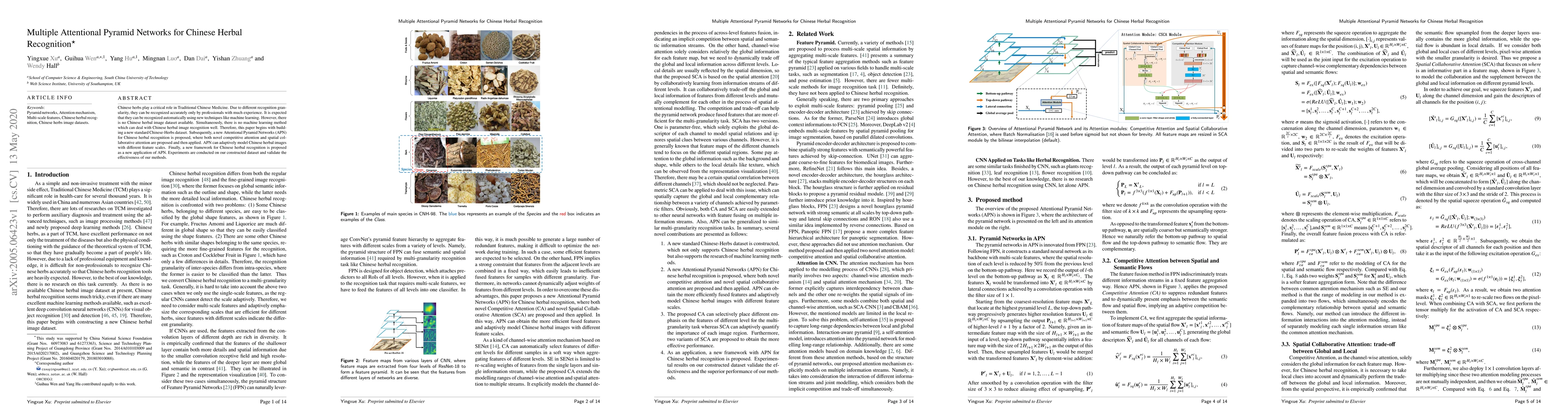 This paper constructs a new Chinese-Herbs dataset and proposes Attentional Pyramid Networks (APN) with competitive and spatial collaborative attention mechanisms to enhance Chinese herbal image recognition. The APN framework is validated on the constructed dataset, demonstrating effective recognition of herbs with different feature scales.