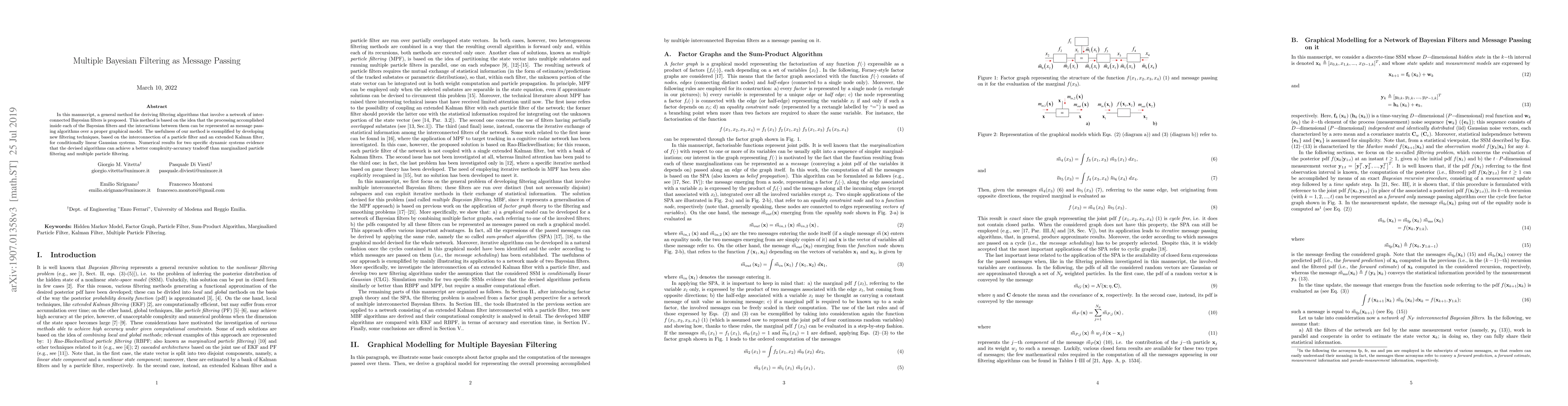 This paper proposes a method for deriving filtering algorithms using interconnected Bayesian filters represented as message passing over a graphical model. The method is demonstrated through the development of new filtering techniques combining particle and extended Kalman filters for linear Gaussian systems, showing improved complexity-accuracy tradeoffs compared to existing methods.