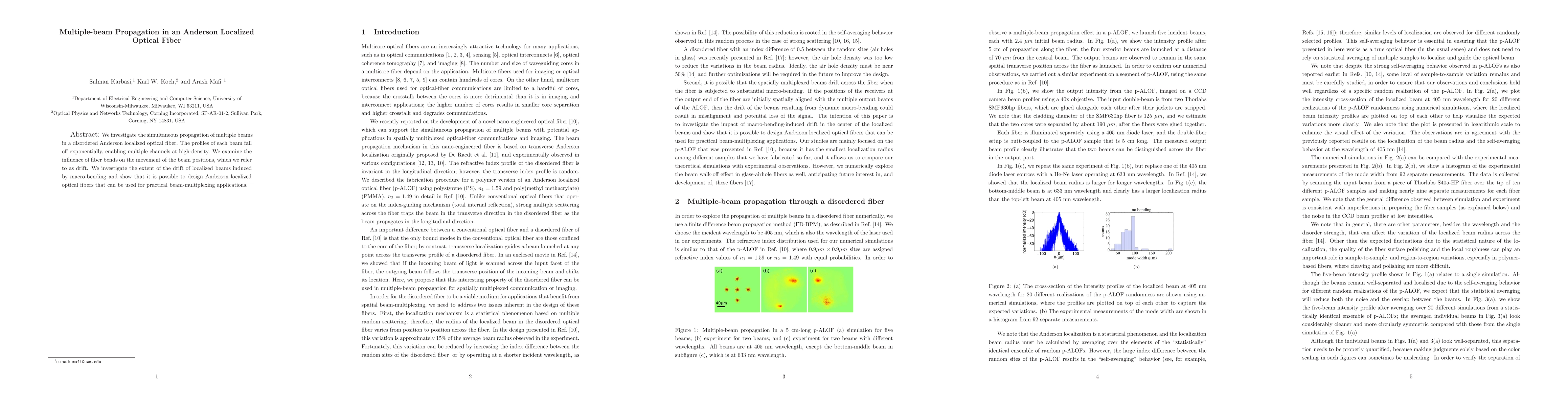 Researchers investigated multiple-beam propagation in disordered optical fibers with exponential beam profiles, enabling high-density channels. They showed that designed Anderson localized fibers can be used for practical beam-multiplexing applications.