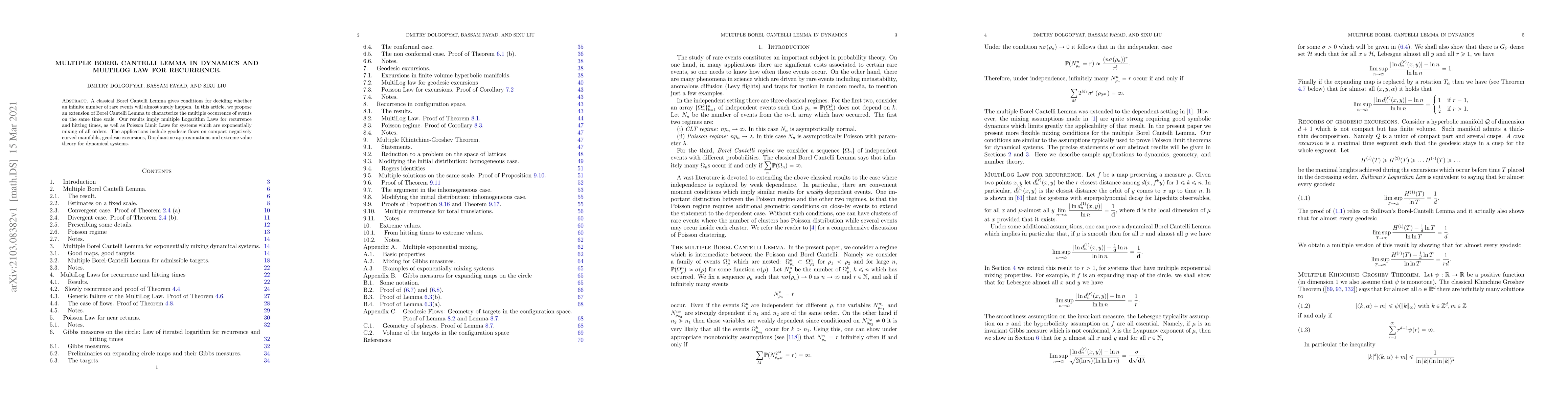 A new extension of the Borel Cantelli Lemma is proposed to study multiple rare events on the same time scale, leading to implications for recurrence laws, hitting times, and Poisson limit laws in dynamical systems.