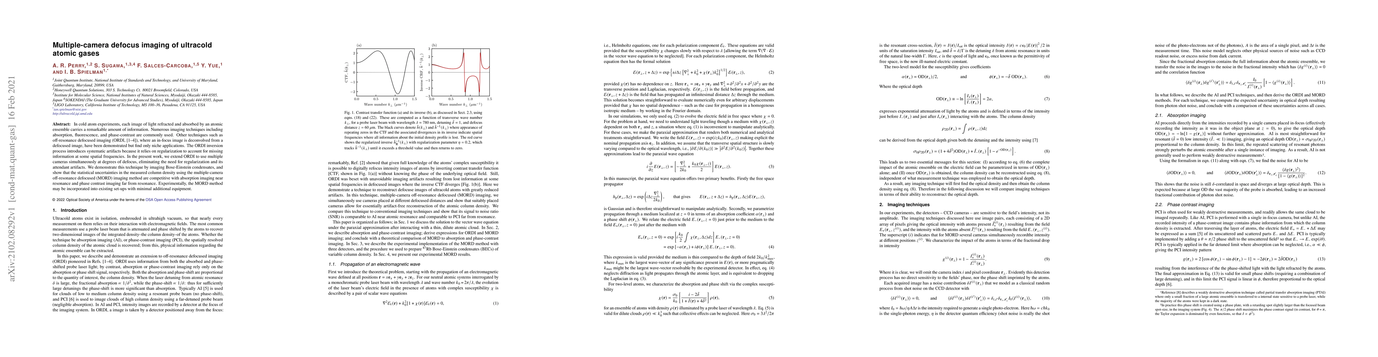 In cold atom experiments, each image of light refracted and absorbed by an atomic ensemble carries a remarkable amount of information. Numerous imaging techniques including absorption, fluorescence, and phase-contrast are commonly used. Other techniques such as off-resonance defocused imaging (ORDI), where an in-focus image is deconvolved from a defocused image, have been demonstrated but find only niche applications. The ORDI inversion process introduces systematic artifacts because it relies on regularization to account for missing information at some spatial frequencies. In the present work, we extend ORDI to use multiple cameras simultaneously at degrees of defocus, eliminating the need for regularization and its attendant artifacts. We demonstrate this technique by imaging Bose-Einstein condensates, and show that the statistical uncertainties in the measured column density using the multiple-camera off-resonance defocused (MORD) imaging method are competitive with absorption imaging near resonance and phase contrast imaging far from resonance. Experimentally, the MORD method may be incorporated into existing set-ups with minimal additional equipment.