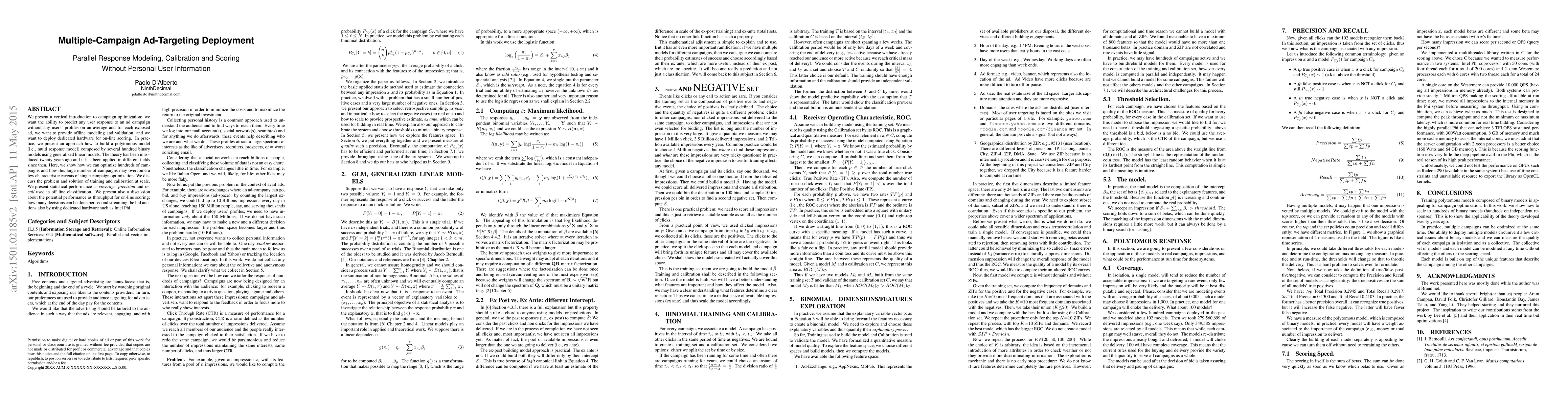 Researchers present a method for optimizing multiple ad campaigns simultaneously without user information, achieving high coverage, precision, and recall in response modeling and scoring.