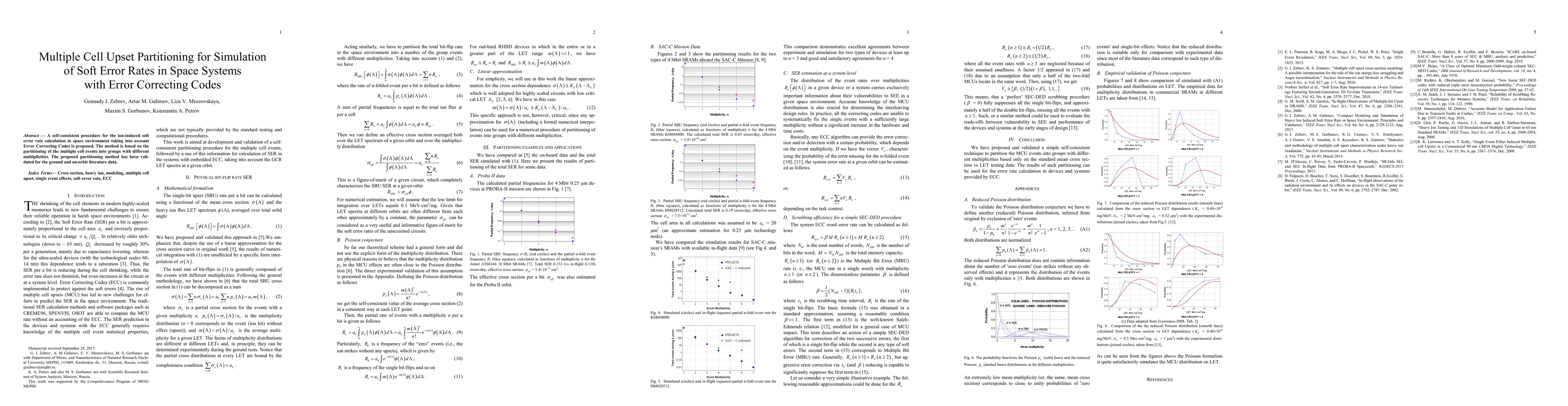 This paper proposes a self-consistent method for calculating ion-induced soft error rates in space systems, incorporating Error Correcting Codes. It partitions multiple cell upset events into groups based on multiplicity, validated against both ground and on-orbit data.