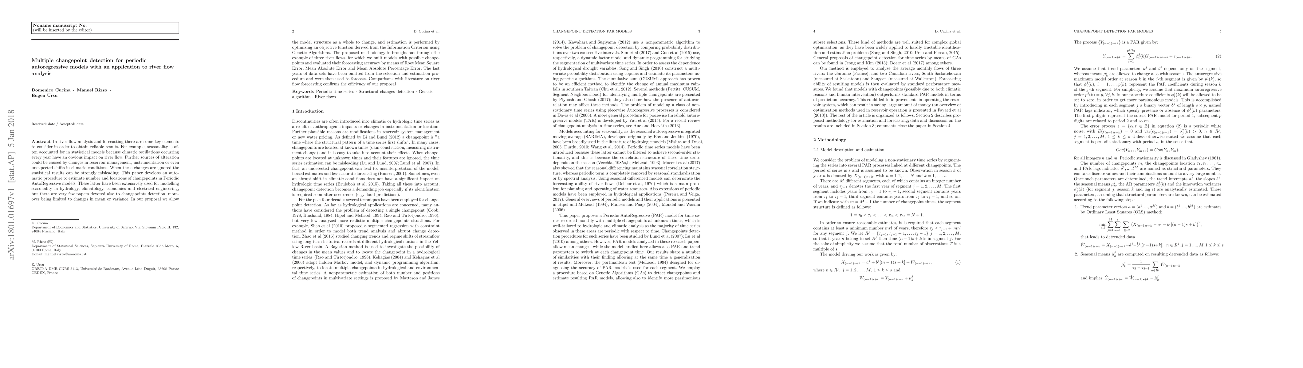 In river flow analysis and forecasting there are some key elements to consider in order to obtain reliable results. For example, seasonality is often accounted for in statistical models because climatic oscillations occurring every year have an obvious impact on river flow. Further sources of alteration could be caused by changes in reservoir management, instrumentation or even unexpected shifts in climatic conditions. When these changes are ignored the statistical results can be strongly misleading. This paper develops an automatic procedure to estimate number and locations of changepoints in Periodic AutoRegressive models. These latter have been extensively used for modelling seasonality in hydrology, climatology, economics and electrical engineering, but there are very few papers devoted also to changepoints detection, moreover being limited to changes in mean or variance. In our proposal we allow the model structure as a whole to change, and estimation is performed by optimizing an objective function derived from the Information Criterion using Genetic Algorithms. The proposed methodology is brought out through the example of three river flows, for which we built models with possible changepoints and evaluated their forecasting accuracy by means of Root Mean Square Error, Mean Absolute Error and Mean Absolute Percentage Error. The last years of data sets have been omitted from the selection and estimation procedure and were then used to forecast. Comparisons with literature on river flow forecasting confirms the efficiency of our proposal.