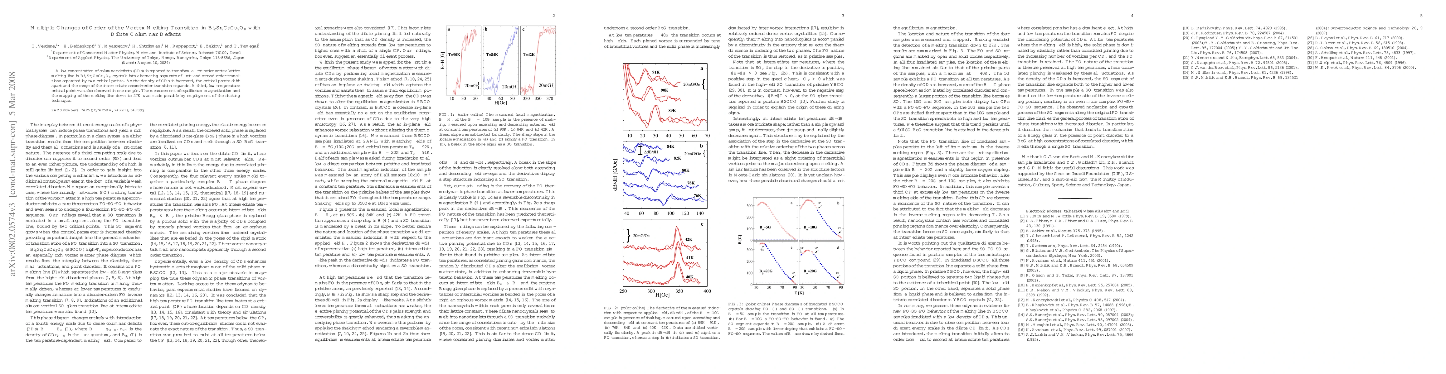 This study reveals that dilute columnar defects in BSCCO crystals induce multiple changes in the vortex melting transition, creating alternating first-order and second-order segments separated by critical points. As defect density increases, the critical points move apart, expanding the second-order transition range, and a third low-temperature critical point was detected in one sample.