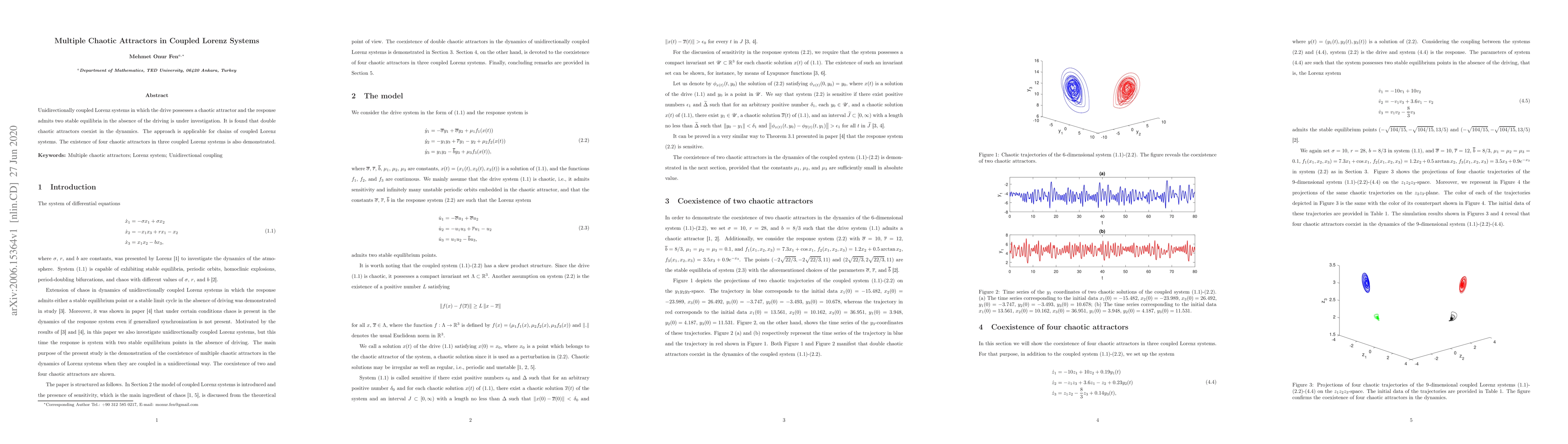 This study investigates unidirectionally coupled Lorenz systems, revealing the coexistence of double chaotic attractors. The research extends to chains of coupled systems, demonstrating the existence of up to four chaotic attractors in three coupled Lorenz systems.