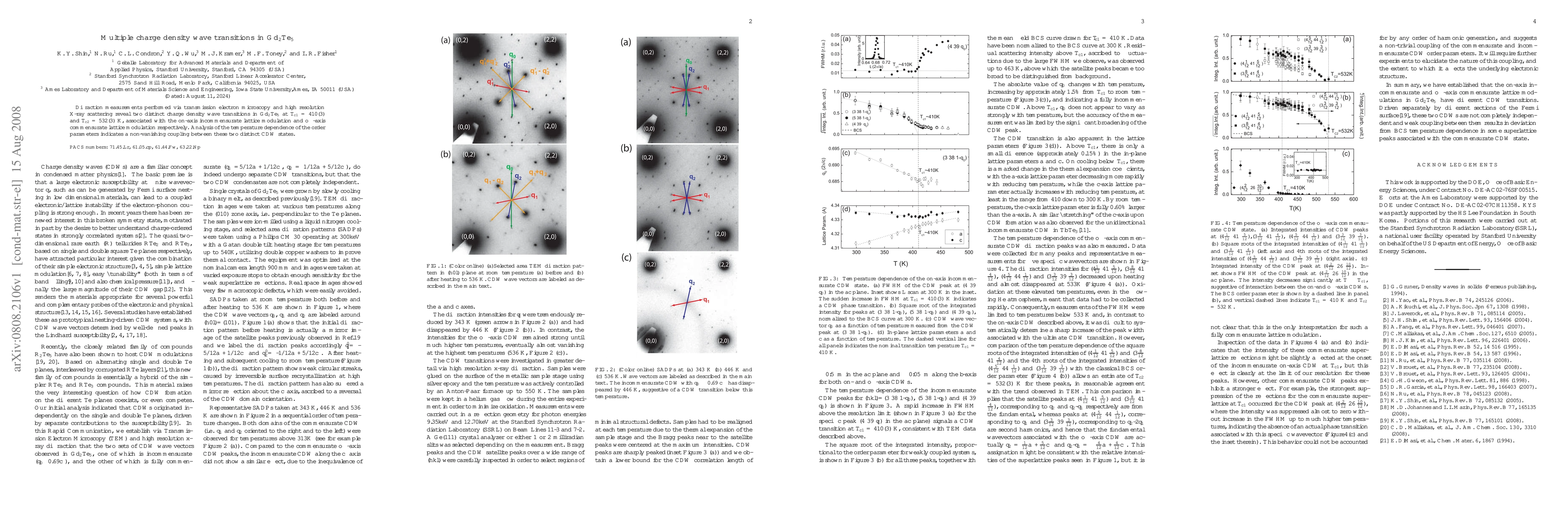 Researchers discovered two distinct charge density wave transitions in Gd$_2$Te$_5$, occurring at 410 K and 532 K, with a non-vanishing coupling between the two states.