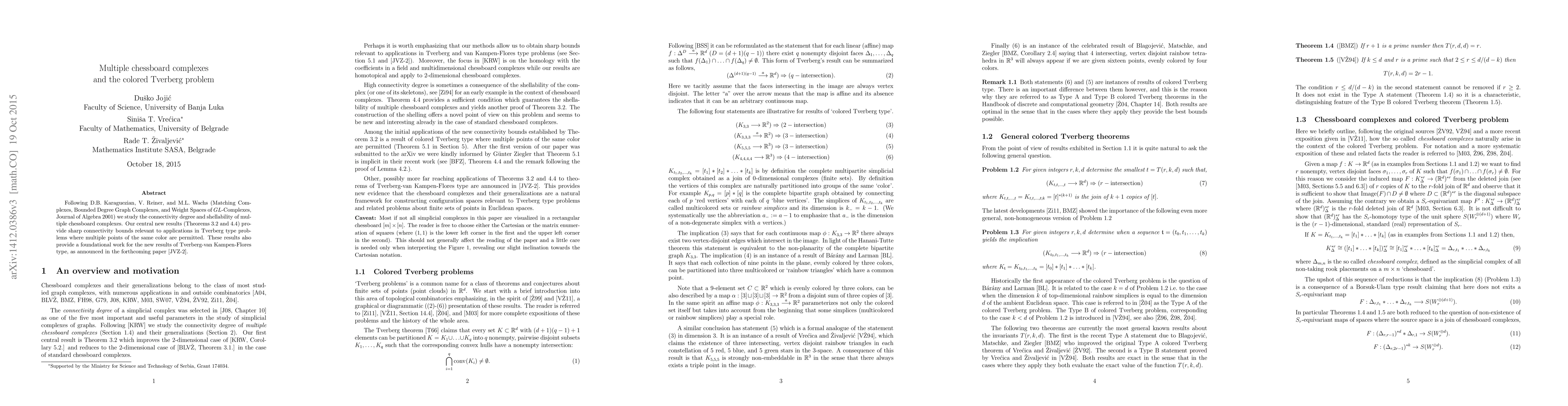 This paper investigates the connectivity degree and shellability of multiple chessboard complexes, establishing sharp connectivity bounds for the colored Tverberg problem, and laying groundwork for related Tverberg-van Kampen-Flores type results. Key findings are presented in Theorems 3.2 and 4.4.