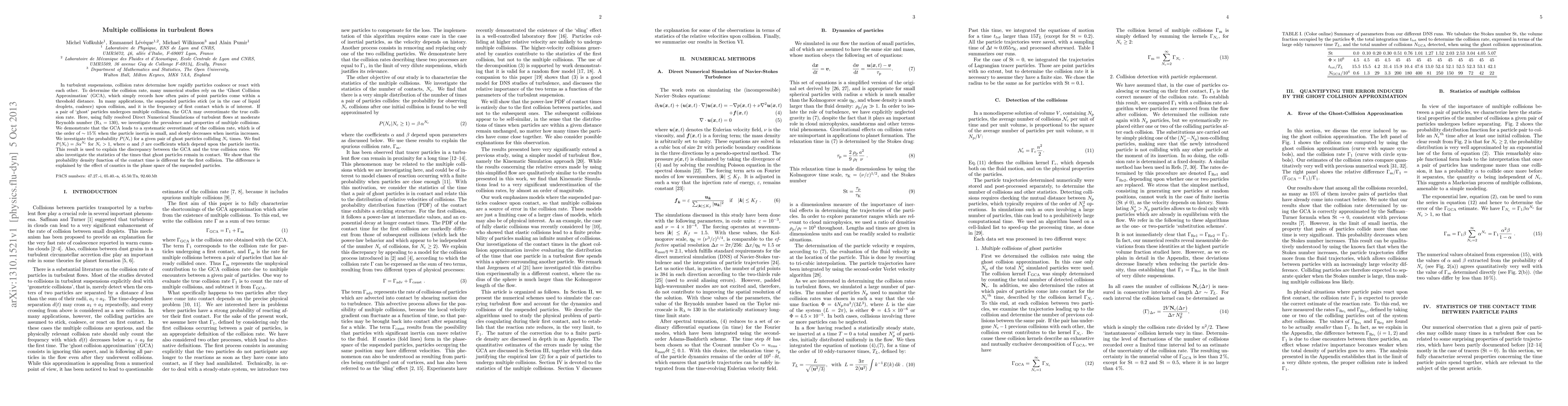 In turbulent suspensions, collision rates determine how rapidly particles coalesce or react with each other. To determine the collision rate, many numerical studies rely on the 'Ghost Collision Approximation' (GCA), which simply records how often pairs of point particles come within a threshold distance. In many applications, the suspended particles stick (or in the case of liquid droplets, coalesce) upon collision, and it is the frequency of first contact which is of interest. If a pair of 'ghost' particles undergoes multiple collisions, the GCA may overestimate the true collision rate. Here, using fully resolved Direct Numerical Simulations of turbulent flows at moderate Reynolds number (R_\lambda = 130), we investigate the prevalence and properties of multiple collisions. We demonstrate that the GCA leads to a systematic overestimate of the collision rate, which is of the order of 15% when the particle inertia is small, and slowly decreases when inertia increases. We investigate the probability P(N) for a given pair of ghost particles colliding N times. We find P(N)=\beta \alpha^N for N_>1, where \alpha and \beta are coefficients which depend upon the particle inertia. This result is used to explain the discrepancy between the GCA and the true collision rates. We also investigate the statistics of the times that ghost particles remain in contact. We show that the probability density function of the contact time is different for the first collision. The difference is explained by the effect of caustics in the phase space of the suspended particles.