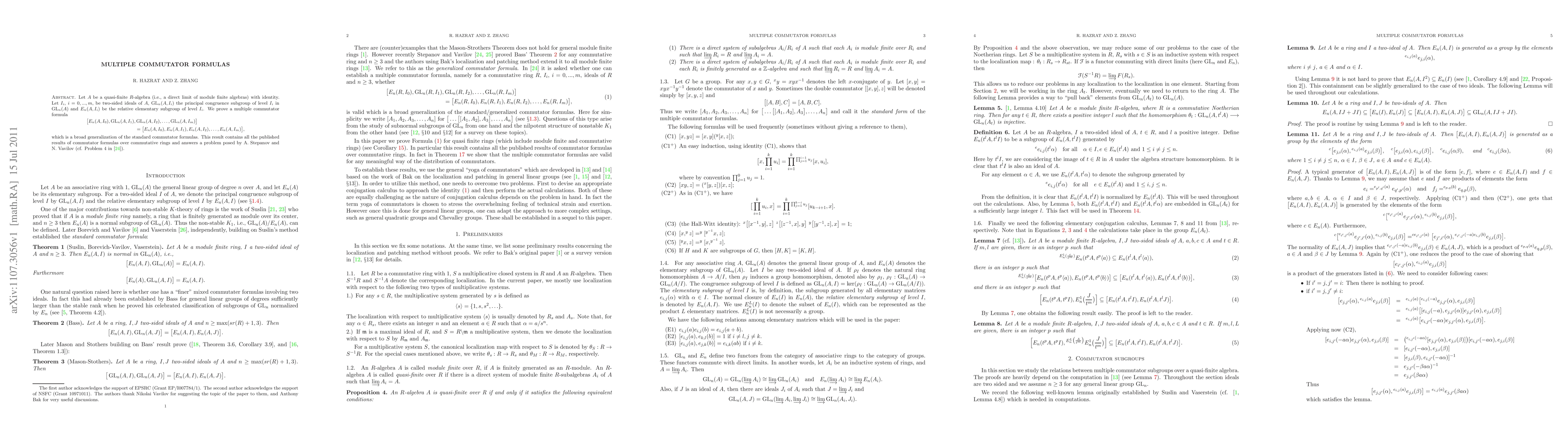 Let A be a quasi-finite R-algebra (i.e., a direct limit of module finite algebras) with identity. Let I_i, i=0,...,m, be two-sided ideals of A, \GL_n(A,I_i) the principal congruence subgroup of level I_i in GL_n(A) and E_n(A,I_i) be the relative elementary subgroup of level I_i. We prove a multiple commutator formula [E_n(A,I_0),\GL_n(A,I_1),& \GL_n(A, I_2),..., \GL_n(A, I_m)] = [E_n(A,I_0),E_n(A,I_1),E_n(A, I_2),..., E_n(A, I_m)], which is a broad generalization of the standard commutator formulas.