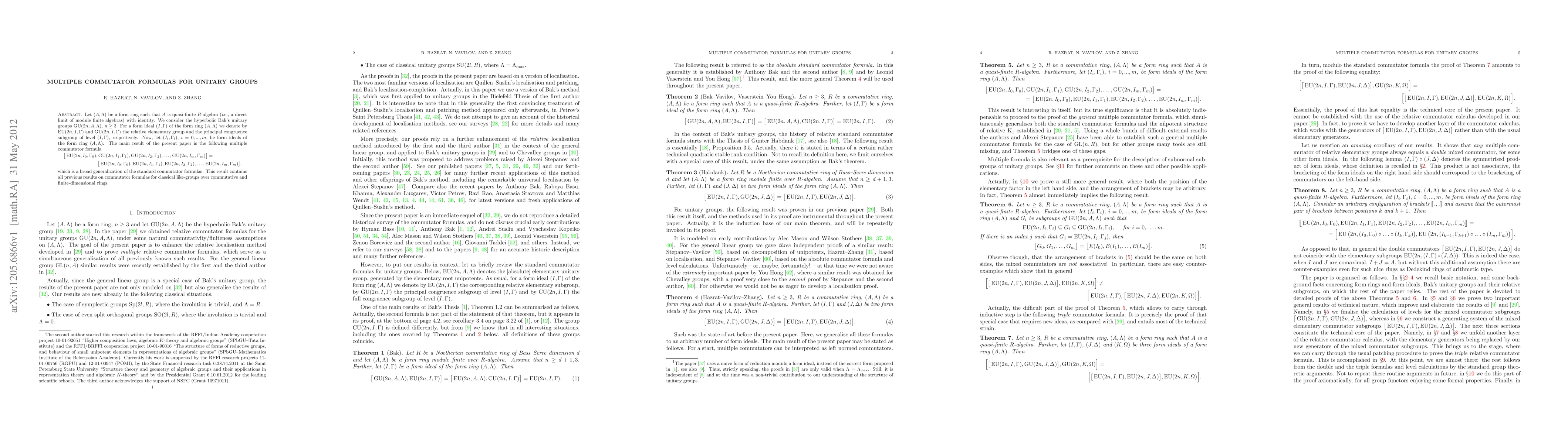 Let $(\FormR)$ be a form ring such that $A$ is quasi-finite $R$-algebra (i.e., a direct limit of module finite algebras) with identity. We consider the hyperbolic Bak's unitary groups $\GU(2n,\FormR)$, $n\ge 3$. For a form ideal $(I,\Gamma)$ of the form ring $(\FormR)$ we denote by $\EU(2n,I,\Gamma)$ and $\GU(2n,I,\Gamma)$ the relative elementary group and the principal congruence subgroup of level $(I,\Gamma)$, respectively. Now, let $(I_i,\Gamma_i) $, $i=0,...,m$, be form ideals of the form ring $(A,\Lambda)$. The main result of the present paper is the following multiple commutator formula [\big[\EU(2n,I_0,\Gamma_0),&\GU(2n,I_1,\Gamma_1),\GU(2n, I_2,\Gamma_2),..., \GU(2n,I_m,\Gamma_m)\big]= &\big[\EU(2n,I_0,\Gamma_0),\EU(2n,I_1,\Gamma_1),\EU(2n,I_2,\Gamma_2),..., \EU(2n, I_m, \Gamma_m)\big],] which is a broad generalization of the standard commutator formulas. This result contains all previous results on commutator formulas for classical like-groups over commutative and finite-dimensional rings.