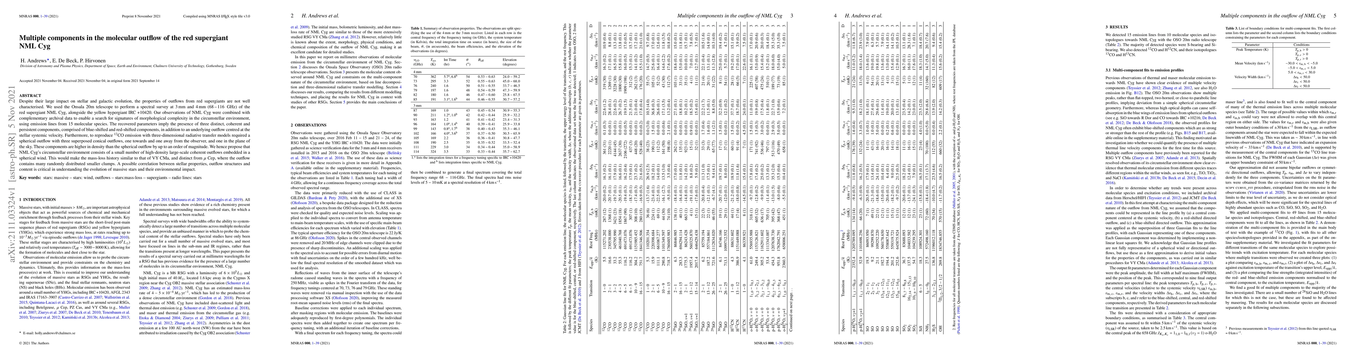 The study of red supergiant NML Cyg's molecular outflow using the Onsala 20m telescope at 3mm and 4mm wavelengths revealed three distinct, persistent outflow components. These components, including blue-shifted and red-shifted sections plus a systemic velocity outflow, are denser than the surrounding spherical wind. The findings suggest that NML Cyg's circumstellar environment comprises a few high-density, large-scale coherent outflows, potentially influencing stellar and galactic evolution similarly to VY CMa, unlike mu Cep.