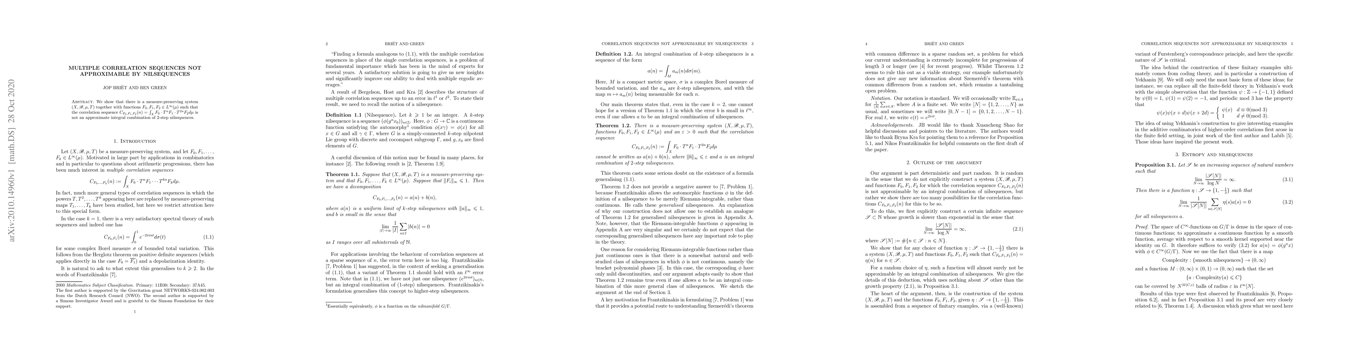 This paper demonstrates that certain correlation sequences arising from measure-preserving systems cannot be approximated by 2-step nilsequences, highlighting the complexity of multiple correlation sequences. The specific example involves functions $F_0, F_1, F_2$ in $L^{\infty}(\mu)$ where the correlation sequence fails to be an approximate integral combination of 2-step nilsequences.