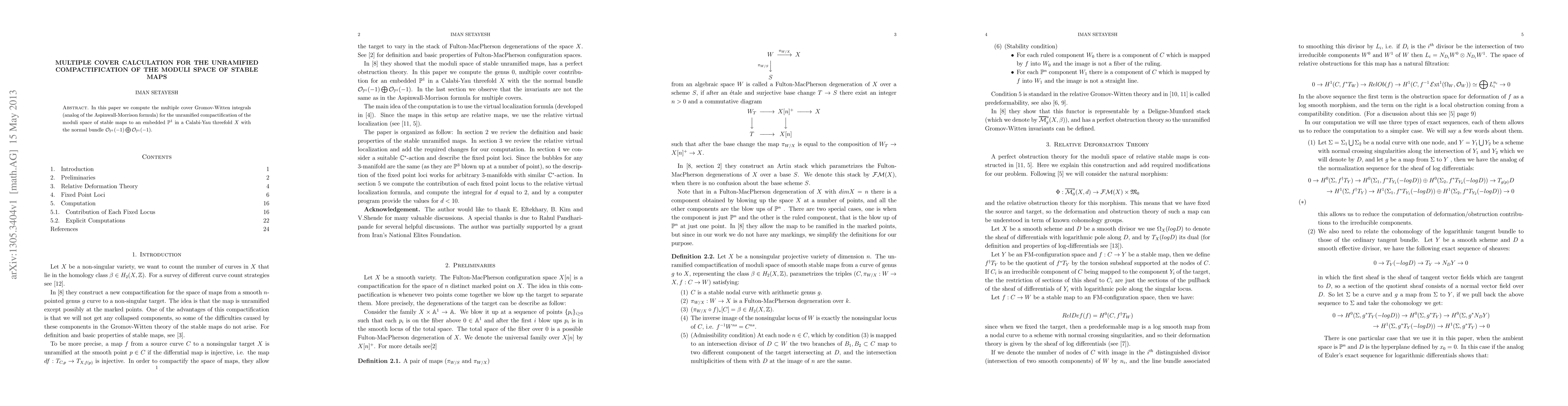 In this paper we compute the multiple cover Gromov-Witten integrals (analog of the Aspinwall-Morrison formula) for the unramified compactification of the moduli space of stable maps to an embedded $\PO$ in a Calabi-Yau threefold $X$ with the normal bundle $\mathcal{O}_{\PO}(-1) \bigoplus \mathcal{O}_{\PO}(-1)$.