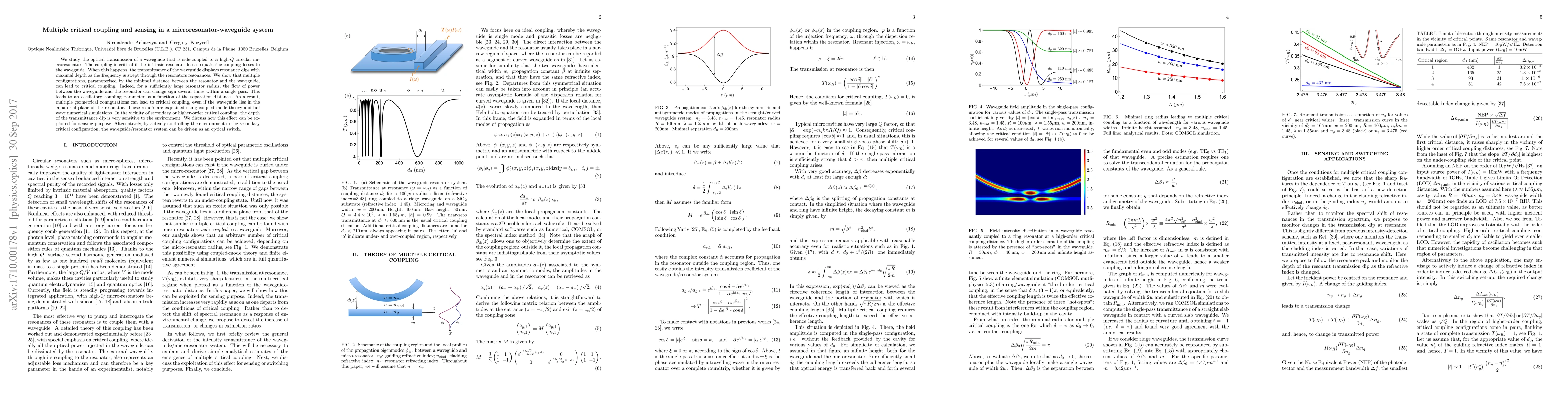We study the optical transmission of a waveguide that is side-coupled to a high-$Q$ circular microresonator. The coupling is critical if the intrinsic resonator losses equate the coupling losses to the waveguide. When this happens, the transmittance of the waveguide displays resonance dips with maximal depth as the frequency is swept through the resonators resonances. We show that multiple configurations, parameterised by the minimal distance between the resonator and the waveguide, can lead to critical coupling. Indeed, for a sufficiently large resonator radius, the flow of power between the waveguide and the resonator can change sign several times within a single pass. This leads to an oscillatory coupling parameter as a function of the separation distance. As a result, multiple geometrical configurations can lead to critical coupling, even if the waveguide lies in the equatorial plane of the resonator. These results are explained using coupled-mode theory and full wave numerical simulations. In the vicinity of secondary or higher-order critical coupling, the depth of the transmittance dip is very sensitive to the environment. We discuss how this effect can be exploited for sensing purpose. Alternatively, by actively controlling the environment in the secondary critical configuration, the waveguide/resonator system can be driven as an optical switch.