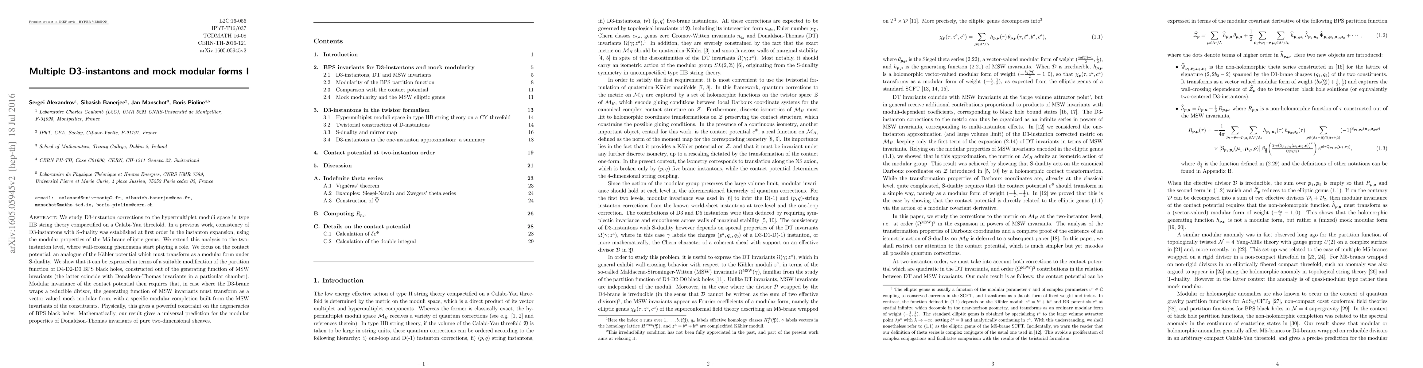 This paper extends the study of D3-instanton corrections in type IIB string theory, focusing on the contact potential and its modular properties. It reveals that the generating function of MSW invariants transforms as a vector-valued mock modular form, providing a significant constraint on BPS black hole degeneracies and a universal prediction for the modular properties of Donaldson-Thomas invariants.
