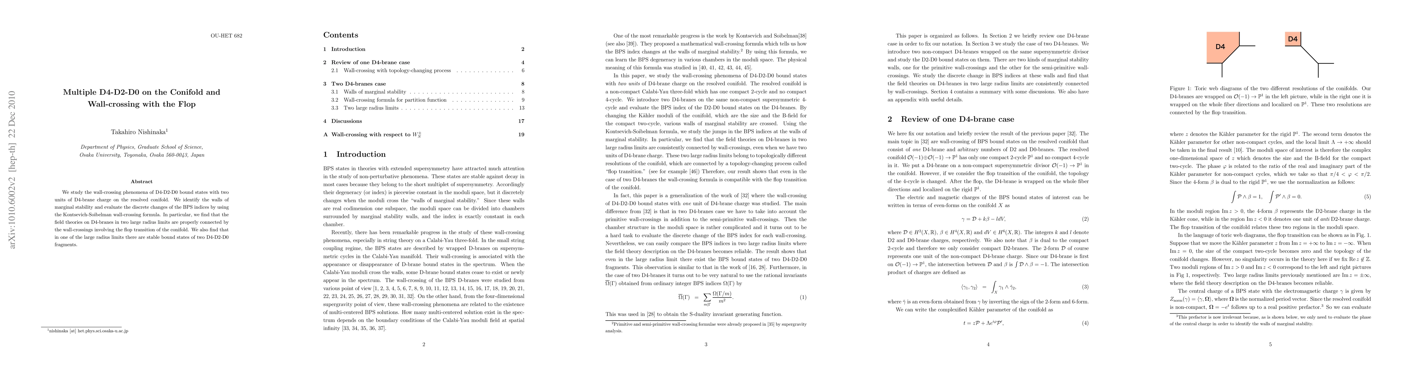 This research investigates the wall-crossing phenomena for D4-D2-D0 bound states on a resolved conifold, identifying stability walls and evaluating BPS index changes using the Kontsevich-Soibelman formula. The study reveals that field theories on D4-branes are connected via wall-crossings involving conifold flop transitions, with stable bound states found in one large radius limit.