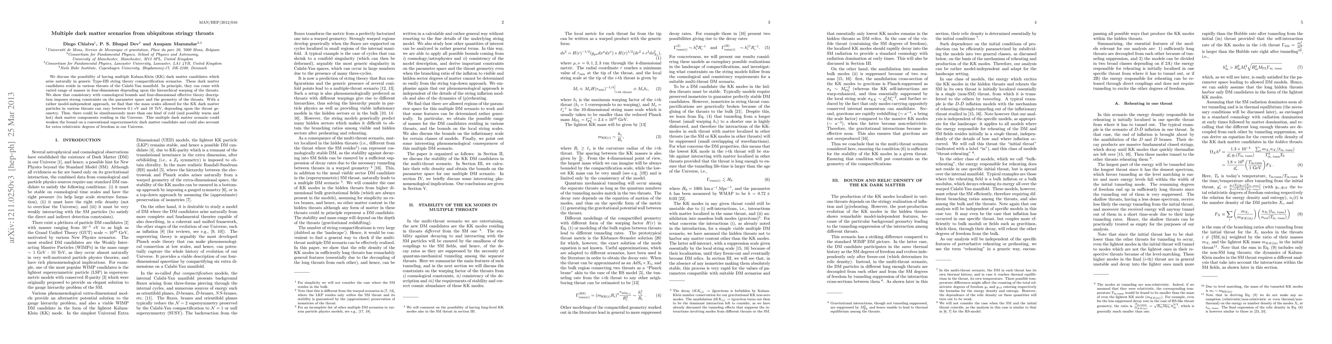 The research discusses multiple dark matter scenarios arising from Kaluza-Klein (KK) modes in Type-IIB string theory compactifications, focusing on their stability and cosmological implications.