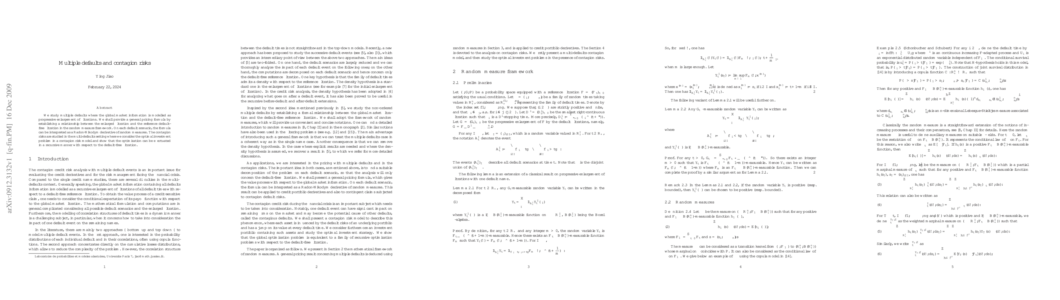 This paper develops a pricing formula for multiple defaults using progressive filtration enlargement and random measures, and explores contagion risks through an optimal investment problem, demonstrating recursive optimization with respect to the default-free filtration.